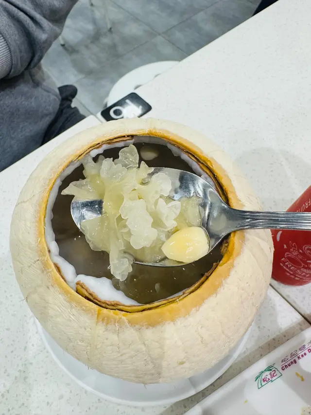 細細個屋企人就會帶我地黎松記食糖水,尋晚食完年夜飯出黎經過見到,就入左去食!餐廳裝修簡單樸素,每樣都好足料。  ⦁雪耳津梨燉海底椰 $61椰皇內包含嫩滑的雪耳,清甜的津梨和爽口的海底椰,口感非常清爽,非常適合秋冬乾燥的時候飲,清潤一下!  ⦁雪糕心太軟 $68心太軟外層酥脆的餅皮,包裹著柔滑的朱古力醬,配埋雪糕,甜而不膩,吃上一口讓人心情愉悅。  ⦁D24榴槤班戟 $59班戟是松記signature的甜品,有芒果、榴槤可以選擇。薄薄的班戟,包裹著濃郁的D24榴槤餡,香氣四溢,口感細膩。 查看更多