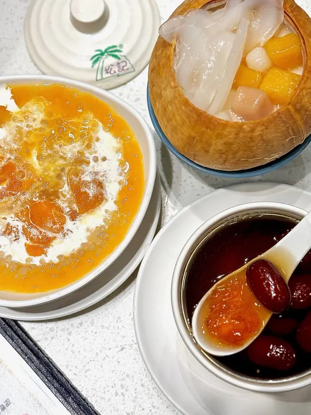 大家小時候有沒有吃過松記?在肥妹中學時經常和同學一起去吃每次都會點Summer,然後就開心聊八卦今天約了很久沒見的同學重拾當年回憶但不知道是不是長大想吃的東西會改變開始想養生?!沒有點Summer 反而點其他甜品可能是天氣冷吧,或者是要到夏天才吃Summer😂松記餐單中有很多不同系列款列,榴槤、綿綿冰、芋圓仙草和中式糖水等等,應有盡有✾ 芒果西米露小丸子 $49選用菲律賓呂宋芒果,滿滿芒果香甜晶凝通透西米和煙韌軟糯小丸子再加新鮮芒果果肉,口感層次豐富✾ 紅棗杞子桂圓桃膠 $58最愛桃膠,養顏美容入口煙韌軟彈帶紅棗和桂圓清甜順喉滋潤,天氣乾燥時吃就最適合不過✾ 椰皇海底椰鮮奶燉蛋白小丸子(凍) $69鮮奶燉蛋白嫩滑且帶椰皇清香搭配爽口海底椰、小丸子和芋圓喜歡地瓜味,入口帶淡淡地瓜香且有嚼勁最後輕鬆刮走椰皇中椰肉吃,很滿足查看更多