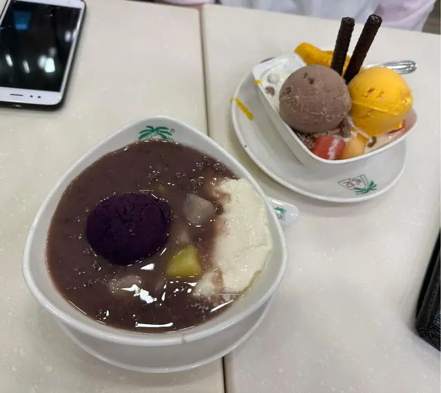 松記名物 Summer2球雪糕+水果墊底+大西米雪糕口味可以自己揀,朱古力味雪糕有朱古力碎係入面🍫🍫水果有西瓜🍉芒果🥭密瓜🍈哈密瓜大西米好有口感,好煙奀配埋芒果汁底+花奶查看更多