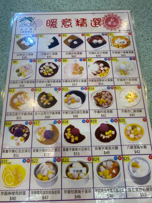 松記糖水店 (銅鑼灣) 網址: https://s.openrice.com/QrbS0wPe000 地址: 香港銅鑼灣堅拿道西15號永德大廈地下G13號地舖 電話: +852 34807222