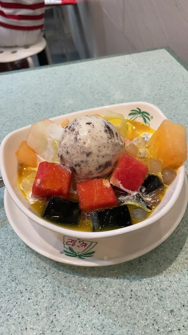 食完韓燒梗係要食甜品啦~我哋即刻過對面食糖水,好鬼熱氣,夾份食一碗綿綿冰先!呢款係芒果綿綿冰,配以Oreo碎、爆珠同埋焦糖醬。首先我哋本來以為餅乾碎同生果味嘅刨冰會好唔夾,點知Oreo碎配芒果刨冰出奇地搭調,仲好有粒粒嘅口感。另外白色透明嘅爆珠(係晒底睇唔到😅)亦都有啲出乎我嘅意料之外,本來以為係珍珠奶茶嗰種珍珠,點知係透明大珍珠嘅size,一咬就會喺個口中爆開溶化!😍🥰最後焦糖醬其實個味道就出唔到比芒果搶晒,下次直頭叫佢走醬汁仲可以冇咁肥仔。😅…查看更多