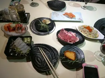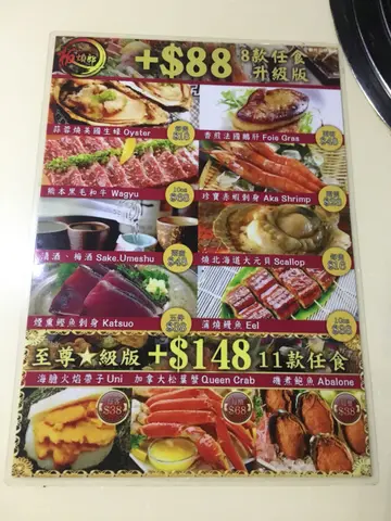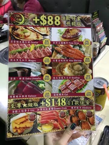 二零一八年十月初,星期四晚上。那時候還在等新工作開始,晚上很多時間到處吃飯,友人很愛到處找放題,這晚他帶我去這間有燒烤的放題。餐廳在五樓,地方挺大,客人蠻多的,但還算整齊。甫坐下,店員送來一份燒鵝肝,上面鋪上一點蟹子,鵝肝燒的香而不腥,作為前菜不錯。放題選擇蠻多,在研究點菜的時候友人已經在熟食區拿了一份泰式螺肉,香葉蔥花等恰到好處,辣度鹹度夠開胃。點一份燒豬頸肉,豬頸肉算腍,配合已經灑上的黑胡椒添香味。熟食吃完就來點刺身,我們升級了可以點黑松露帶子大蝦,帶子大顆,不過加上黑松露醬多吃一顆就開始有點膩;大蝦生吃略嫌不夠新鮮,原來放在鍋上燒熟了更適合,我們瘋狂點大蝦來燒。我們再點了些北海道大元貝及磯燒鮑魚慢慢燒,食材算新鮮,燒貝殻類本人不太有耐性,鮑魚要燒久一點。最後當然是甜品,我們全都拿來試試,整體來說甜品質素尚算不錯,每一款的味道各有特色,糕點類也是推薦的。價錢方面就一般放題收費,吃下來其實不用升級也已經夠吃,升級了多幾款食物而已。…查看更多