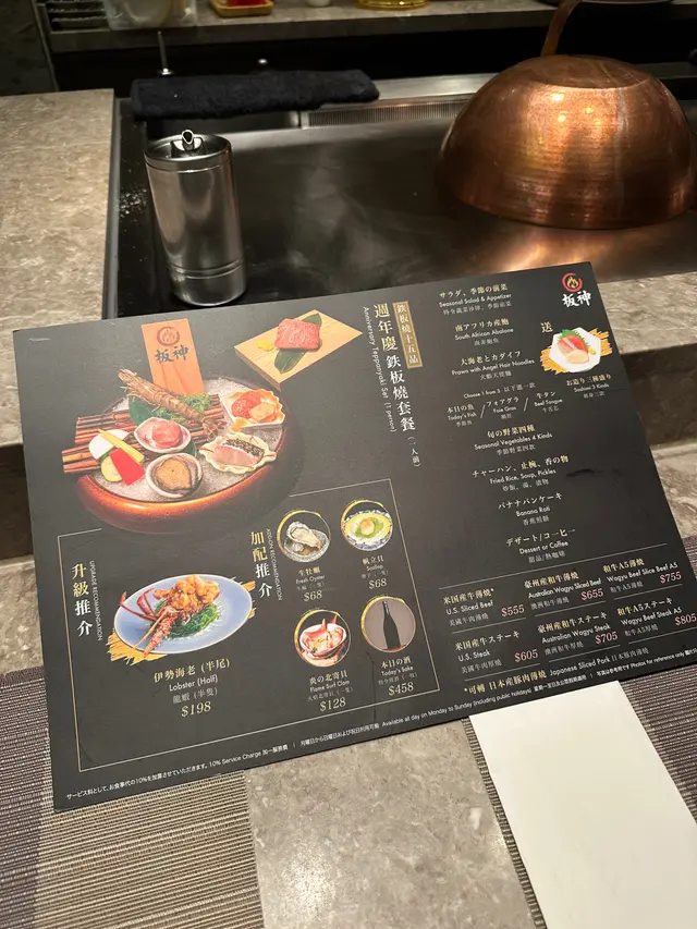 板神鐵板燒一向出名高質,最近他們繼續推出了幾抵食的週年慶套餐,$𝟓𝟓𝟓起就可以食到晚市鐵板燒!🤩 今次和家人去了觀塘店,順道孝敬下屋企人~🤭餐廳比較隱蔽,門面好低調,我地差啲搵唔到🤣好彩我打去餐廳求救🤣🤣 餐廳環境寬敞舒適,店內有幾間房間,全部都是席前料理,可以欣賞與師傅互動及欣賞他們的手藝!👍🏻 而且食物方面都十分高質!😍𖠁週年慶鉄板燒套餐 $𝟓𝟓𝟓晚市由$𝟓𝟓𝟓至$𝟖𝟎𝟓 的套餐,分別在於客人選擇的肉品,有米国產牛、豪州產和牛及𝐀𝟓和牛選擇。 我今次吃了最平的$𝟓𝟓𝟓美國牛肉薄燒套餐,性價比非常高!🥗時令沙律及前菜清新的蟹籽沙律,加上日式前菜蕹菜菇菌,爽口開胃!🍣送 刺身三款每人均送當日三款時令的刺身,有中拖羅、帆立貝及魷魚片,中拖羅很肥美,其他都很新鮮鮮甜!😋🦐大蝦天使麵大大隻大蝦,肉質新鮮爽彈,師傅連蝦腸都挑埋出嚟,非常細心!😍 日本天使麵炸得很香脆,配上即煮蝦膏醬一起吃,非常滋味!全部醬汁我都食晒!🤤🦪南非鮑魚活鮑魚好新鮮,爽彈鮮味!師傅會切走鮑魚多餘的部份-鮑魚嘴、內臟及外殼,非常細心!師傅調味時加上牛油醬汁及海苔粉,已經非常入味!😙 🐟季節魚/鵝肝/牛舌芯(三選一)我選了鵝肝,家人選了季節魚,當日是白鱈魚。鵝肝好厚切,煎至外脆內軟,滿滿油脂感!🤤 夾著漢堡包仔一起吃,非常滋味!好想食多件呀!😈 白身魚煎得好香口,外表煎至微脆,肉質非常嫩滑!😋🐮米国產牛 - 美國牛肉薄燒美國牛肉燒得軟嫩,包住咗大量炸蒜片及蔥碎,口感豐富!😋🥗旬の野菜四種季節野菜四款,會跟牛肉薄燒一起上碟。🦐櫻花蝦炒飯🍚用鐵板炒的櫻花蝦炒飯,色香味俱全,飯粒粒分明,加入大量櫻花蝦、蛋花、洋蔥粒、紅蘿蔔粒和香蔥粒,為炒飯帶來了豐富的口感!🥒漬物 漬物微酸鹹味中帶有少許甜味,用來伴飯進食,十分開胃!🍲麵豉湯最後喝一碗暖胃的麵豉湯,用龍蝦及蝦殼熬製,味道非常鮮味!🍰甜品/咖啡我們選了甜品,是日甜品是朱古力卷蛋,朱古力味濃郁,蛋糕鬆軟!我們追加了一個朱古力香蕉𝐩𝐚𝐧𝐜𝐚𝐤𝐞+焦糖多士,好好味,為一餐畫上完美的句號!🤤…查看更多