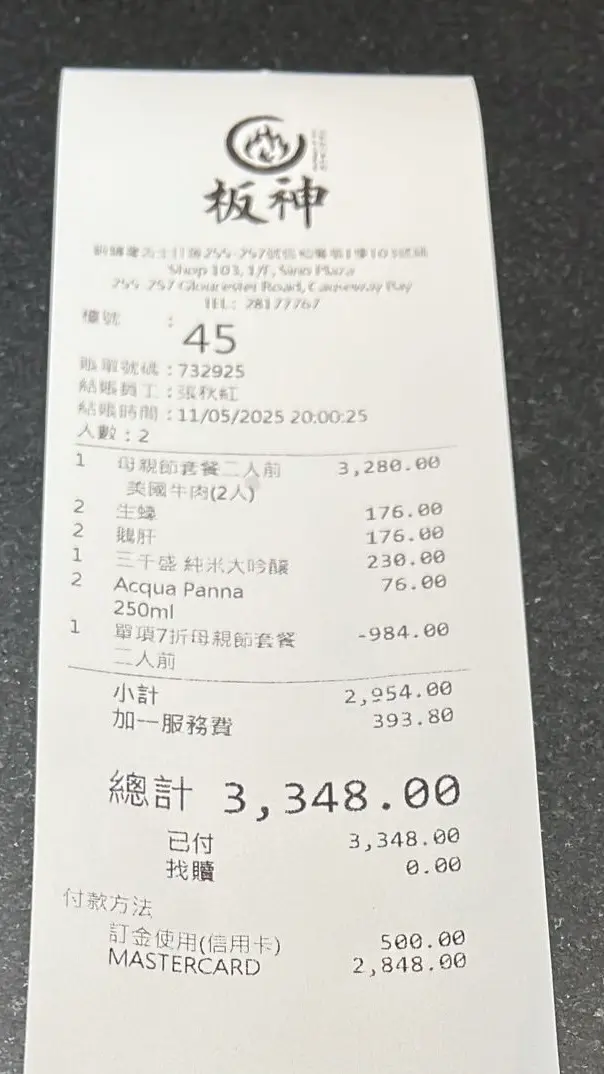 板神鉄板燒日本料理 (信和廣場) (銅鑼灣) 網上訂座享低至5折優惠兼賺Rice Dollars 網址: https://s.openrice.com/QrbS0QB8A00 地址: 香港銅鑼灣告士打道255-257號信和廣場1樓103號舖 電話: +852 28177767