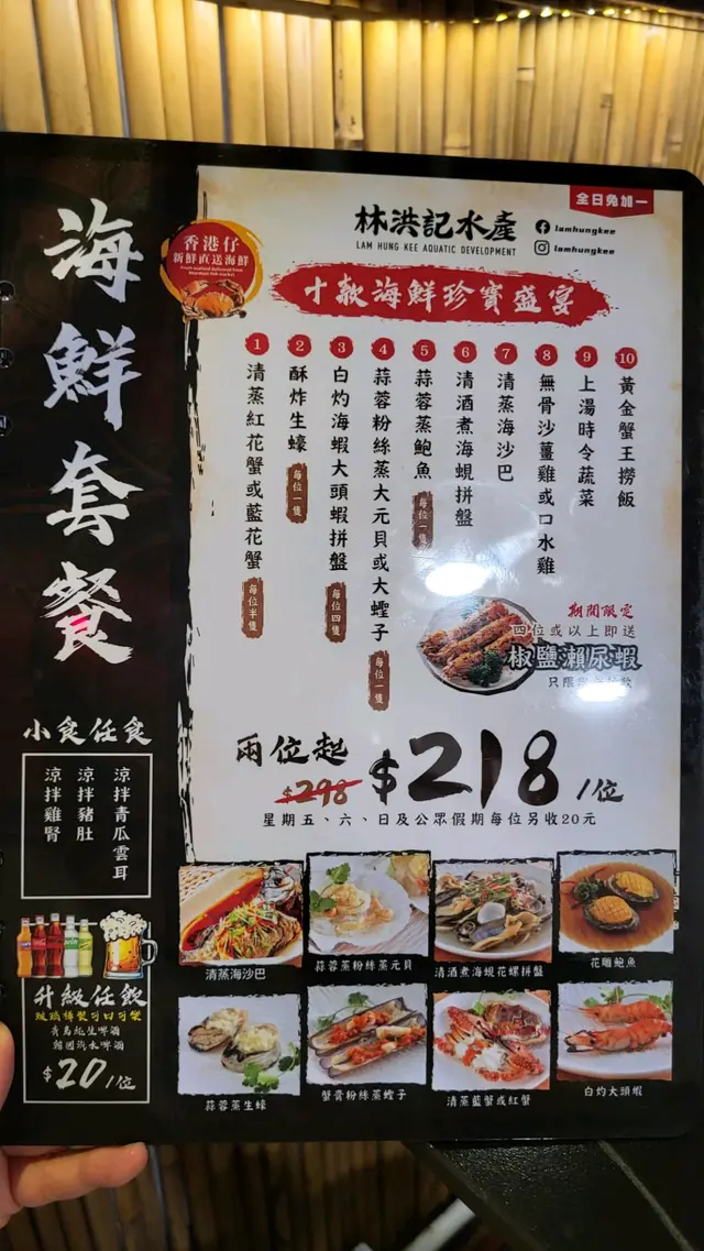 要不是香港本地朋友强烈推荐,我根本不知道这家‼️真的吃得超爽,回到家还在疯狂回味……😭🤤我们点了套餐 真的划算到爆💥套餐里有每人限一份的海鲜——生蚝、鲍鱼、螃蟹、蛏子王、龙虾、青口、大头虾、扇贝全都是我的爱!一上桌就恨不得马上蒸来吃~这家店超贴心,每种海鲜要蒸多久都大大地写在墙上,完全不用担心弄错👍海鲜是真的新鲜,听说都是当天从市场运来的吃起来口感爽弹、鲜甜到不行,爱了爱了❤️吃完蒸汽海鲜还没完,后面还能继续打火锅!还有和牛、牛舌、牛肉,虾、白贝、这些都可以无限续加~如果你来香港又是海鲜爱好者,不用犹豫,直接冲这家就对了!!!#香港美食 #香港旅游 #香港探店 #香港火锅 #香港海鲜放题 #香港蒸汽火锅 #林洪记水产 #香港打卡 #香港海鲜火锅 #香港放题任吃…查看更多