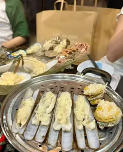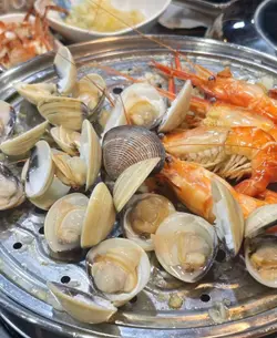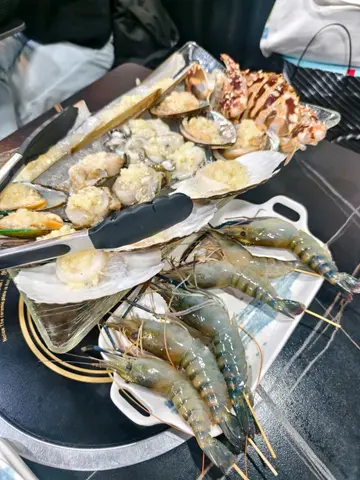 組員寶寶帶我們去過一次以後就愛上了,願稱之為在香港吃過性價比最高的海鮮自助餐廳🍴已吃過三次哈哈哈哈聚餐首選⚪️我們吃的是308$/人的套餐,餐牌上可以看到,除了九種海鮮不能續,其他的都可以任吃(兩小時內⚪️P4龍蝦非常新鮮,剛蒸出鍋肉質是Q彈的⚪️P5可以無限續的羅氏蝦,每一隻都爆膏⚪️P7P8肥牛、雪花、雞肉都很嫩很新鮮,花螺不新鮮,牛肚是假牛肚的口感,別點⚪️P9按鍋蒸的白貝,都很鮮美⚪️P10老闆送的大閘蟹,味道一般,肉有點散,他們家的大閘蟹質量應該一般,因為那時候我們隔離桌的local阿姨們點的大閘蟹套餐,從開始吃吐槽到結束🤣🤣一直說我們點的套餐划算🤣🤣🤣⚪️吃到最後就可以煮海鮮粥啦,放蝦、白貝、生蠔、玉米。出鍋就很甜美~⚪️地址:深水埗C1出口,再走個三分鐘左右,黃大仙區也有分店,兩家都吃過,深水埗的品控好、海鮮更新鮮。…查看更多