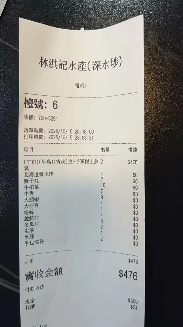 每次加班到深夜,突然好想吃海鮮,想起朋友推薦的林洪記水产,沒想到深夜依然營業 。點了一份龍蝦泡飯和豉椒炒蜆,等待時間不長,菜品卻誠意滿滿 。龍蝦泡飯的米粒吸飽了龍蝦湯汁,熬得濃稠綿密,每一口都能吃到龍蝦肉碎,撒上脆米後口感層次豐富 。豉椒炒蜆完全沒有沙粒,蜆肉飽滿,豉椒醬辣度適中,鮮香味濃,配著白米飯不知不覺就吃了兩碗 。老闆看到我獨自用餐,還送了一份小份水果,瞬間被這份溫暖打動,以後深夜解饞就認準這裡了 。…查看更多