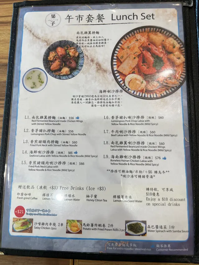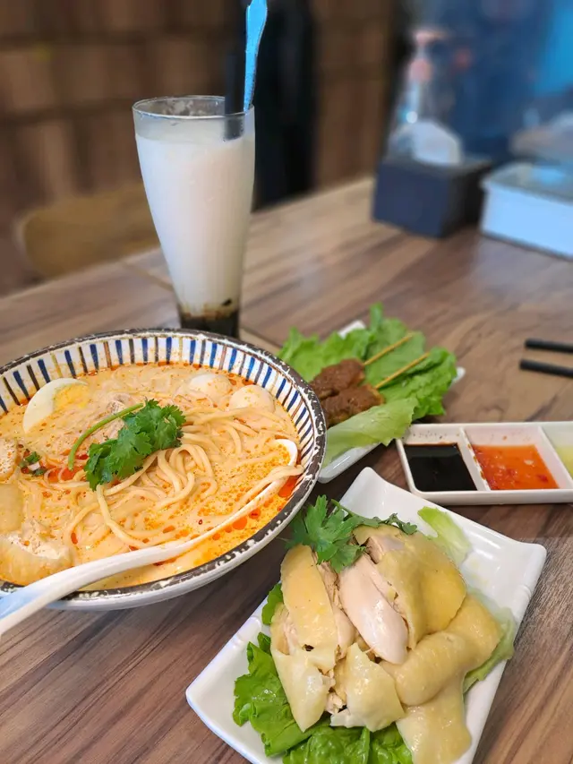屋企人一向都幾鐘意食東南亞既菜式,但係北區實在甚少搵到有質素既東南亞餐廳,當日經過大埔就順手買左幾個送返屋企。香茅豬排飯豬排好脆好金黃,香茅嘅香味濃郁,食落味道比較重,肉質偏有咬口唔會醃到軟淋淋。海南雞喇沙我就最鐘意喱個面,雞肉鮮嫩配上椰奶香氣濃郁的喇沙湯底同粉面類非常夾,掛湯效果一流。串燒拼盤串燒拼盤都非常足料,欣賞師傅唔會因為急時間而燒到串燒過哂火,每一串都係慢火燒出黎,保留到口感同埋肉質仲係好鮮嫩。香煎豬頸肉豬頸肉係我每次食東南亞餐廳都會叫既,果子既豬頸肉表面煎得好酥脆,真係驚艷到我。整體而言,我同屋企人都覺得果子既質素唔錯,可惜近日再去既時候見到果子已經冇左做,下次有機會會去分店再支持下…查看更多