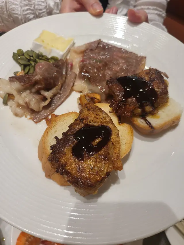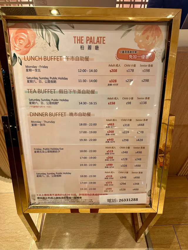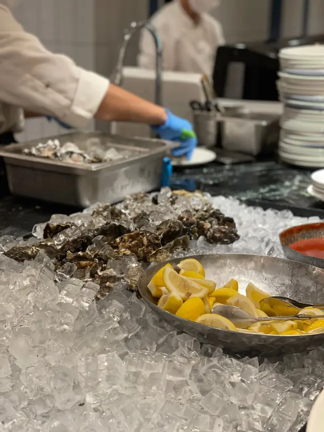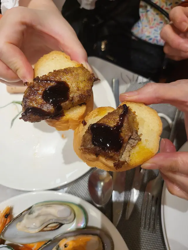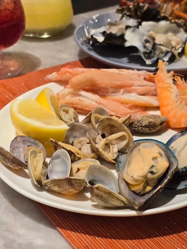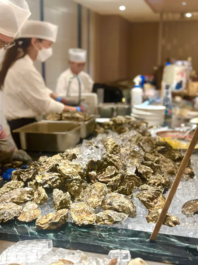 之前食過假日下午茶,百幾數一位性價比高。今次就食環球海鮮、美國極黑牛鐵板燒自助晚餐,時間比平時更早,係由17:00-19:00 2小時用餐:1. 冷盤食了美國生蠔,肉質鮮甜,清洗乾淨又冇嗰陣過濾水味,龍蝦如果冇見佢放上枱就要有禮貌地問職員拎2. 刺身只食了三文魚,肉質滑嫩,油脂分佈平均,其他3款唔特別唔想食3. 飲品有果茶、餐前酒、紅白酒,咖啡奶茶等4. 冷盤有各種不同沙津,薯仔蛋沙津、南瓜沙津、凱撒沙津不妨一試,沙津菜好新鮮5. 熱盤食過口水雞,肉質滑嫩、紅油炒手翻兜再翻兜、關東煮不過不失、豬腳薑夠淋薑夠入味,籠仔蒸蝦爽口彈牙,卡邦尼白汁意粉夠juisy,羊鞍好冧好食,芝士牛肉漢堡(鐵板上) 一般6. 甜品有心意圖案設計心太軟,流心部份是特濃朱古力醬好好食唔甜、豆腐花豆味重口感唔錯、tiramisù 唔好食口感怪、芒果慕士蛋糕、鮮果忌廉蛋糕、藍莓批、啫喱糖、林明頓都唔錯,款式好多,淺嚐亦很滿足7. 雪糕:Mövenpick 口味有雲尼拿、士多啤梨、香蕉、椰子、檸檬青檸雪葩、蜂蜜杏仁,個人都係鐘意雲呢拿服務幾好有禮,人手雖然唔多,但收碟&補給速度很快,個人建議食17:00-19:00 時段,冇咁多人又唔使同人爭,係個唔錯體驗。…查看更多