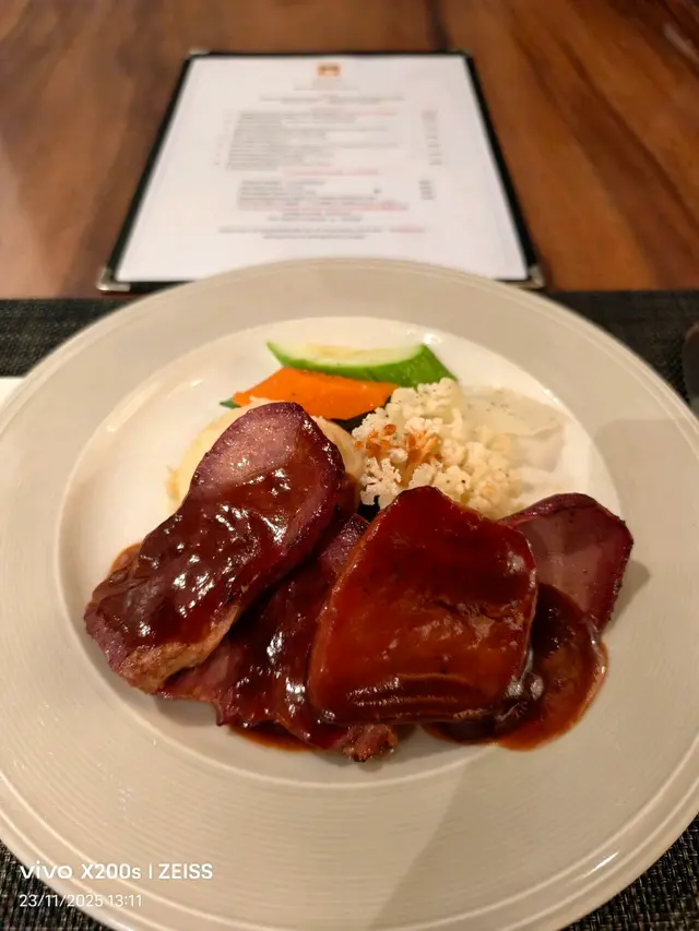 無論是食物、氛圍還是服務都無可挑剔,絕對是特別日子或朋友聚會的絕佳選擇。**Starter(前菜)** 前菜的選擇豐富且精緻,食材新鮮,擺盤講究。無論是輕盈的沙拉還是香脆的小點,都能瞬間打開味蕾,為接下來的餐點做好準備。**Soup(湯品)** 特別要介紹的中湯, 每一樣配料精心配搭,感受到廚師的用心,很適合在音樂的陪伴下慢慢品味。**主菜** 主菜的表現更是令人驚艷,肉類料理火候掌握得恰到好處,外焦內嫩;搭配的醬汁與配菜相得益彰。每一道主菜都展現了餐廳對食材的尊重與創意。**甜品** 甜品是完美的收尾,法式焦糖燉蛋,甜而不膩,口感細膩,讓人感受到幸福感。特別推薦搭配一杯咖啡,享受完美的餐後時光。**咖啡** 咖啡的品質同樣出色,香氣濃郁,口感順滑。為這場美食之旅畫上完美的句號。**現場歌手與氣氛** 現場歌手的表演為整個用餐體驗加分不少,音樂風格多樣,從輕柔的情歌到熱情的流行樂,讓整個餐廳充滿活力。與朋友聚會時這樣的氛圍更能讓大家放鬆並享受當下。總的來說,這家音樂餐廳無論是食物品質還是整體氛圍都值得推薦,絕對是慶祝特別日子或與朋友共度美好時光的好去處!…查看更多