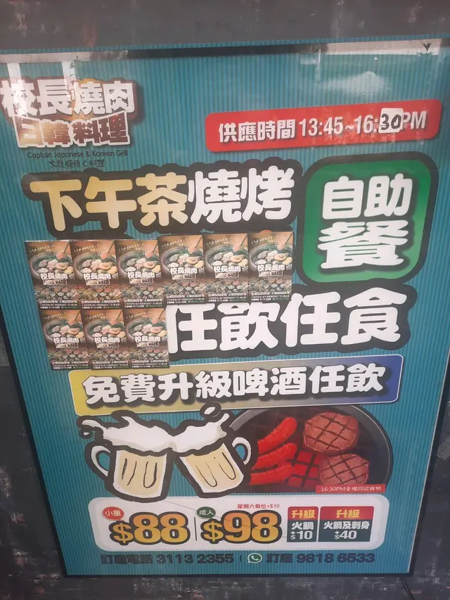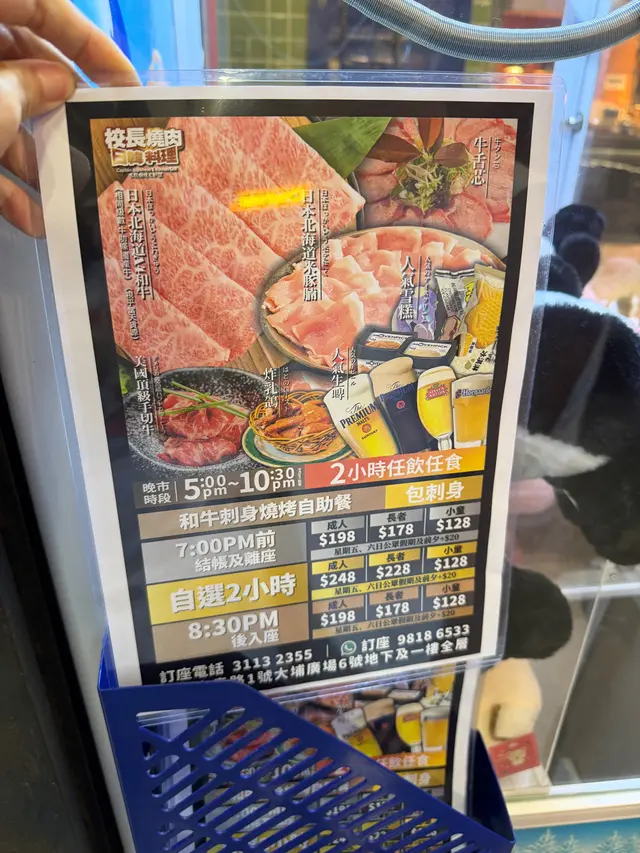 真係大癲, 竟然有咁抵、咁好食嘅放題. 真係不枉我由紅磡去到大埔嚟會一會「校長燒肉」.舖頭門面好特別, 有大大個超人喺度坐陣, 行過路過都想望多眼. 入到餐廳, 嘩!面積都好大, 乾淨舒服, 環境唔錯, 有打卡靚位, 服務員仲好好禮貌添. 食物方面, 餐廳主力推介任食A4和牛同生啤任飲. 其實佢個價錢, 係包全包宴, 任食任飲, 真係冇誇張, 款式多到可以媲美酒店自助餐. 魚生、壽司、火鍋、韓燒、甜品、糖果、雪糕、雪條、飲品、特飲應有盡有. 必食推介:~鹿兒島A4黑毛和牛三角腩~美國頂級手切牛~A4北海道黑毛和牛~A4黑毛和牛辣椒仔~牛舌芯~日本北海道千歲う米豚、豚腩~羊架~燒乳鴿講下我喜愛嘅牛舌芯, 入口極致軟嫩,幾乎入口即化, 但又帶有輕微嘅爽脆感, 唔會過於軟爛. 味道方面, 具有濃郁嘅牛油香氣同甘甜味, 無內臟嘅腥羶味. 燒烤後依然能保持豐富肉汁, 吃起來不乾不柴.仲有羊架, 我仔平時唔食嘅, 佢呢餐食咗兩大件. 燒烤前, 眼見肉色係呈鮮嫩嘅粉紅色, 脂肪分布均勻且呈雪白色. 優質羊架好好味.刺身、魚生都好好味, 三文魚好肥美. 自助甜品我仔整咗一碗畀我食, 心都甜埋. 我仲食咗兩杯雪糕. 食埋呢餐先減肥啦. 我仔仲一邊食一邊send相去同學群組, 係咁推介呢間餐廳, 話要帶啲同學過嚟食添. 心動不如行動, 我唔講咁多啦, 快啲約埋三五知己過嚟試下啦.校長燒肉日韓料理(大埔分店)大埔安泰路1號大埔廣場6號地下訂座電話:3113 2355WhatsApp:9818 6533