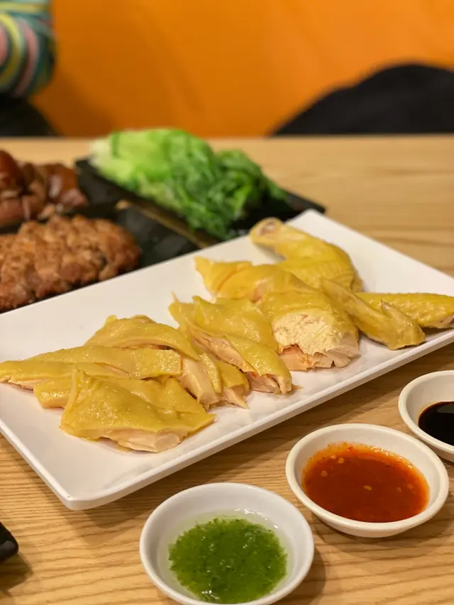 今日就去咗試吓嗰間話題性十足嘅海南雞飯店。揀咗半隻去骨海南雞同半隻黑松露海南雞,剛端上嚟就聞到陣陣香味,真係好惹味啊!黑松露味道算輕柔,但係啲雞本身已經夠晒入味,滑潤得嚟又唔會好油,真係食到手停口唔停😍。再嚟就係小朋友嘅最愛 — 粟米紅蘿蔔南瓜排骨湯。飲得出嚟湯底真材實料,飲一啖就暖哂心!個人特別鍾意嗰三款醬料,尤其係嗰姜葱油,足夠香口,帶出海南雞嘅風味,同啲雞油飯一拼簡直係嗲到爆💣!麻辣豬耳其實意外嘅可以接受,唔似外面嗰啲辣到爆棚嘅,啖啖脆口,鍾意吃辣嘅朋友都唔好錯過啊。而肉骨茶雖然係我哋今次嘅配角,但佢嗰陣陣草本香氣都令人印象深刻,可惜海南雞實在太搶鏡。坦白講,呢次食得真係好開心、好滿足,下次一定會再嚟,記得要提早訂位呀,唔好等到無位就悔之晚矣。嘩,我已經諗緊下次要點啲乜嘢好味嘢喇!👅💥🍽️查看更多