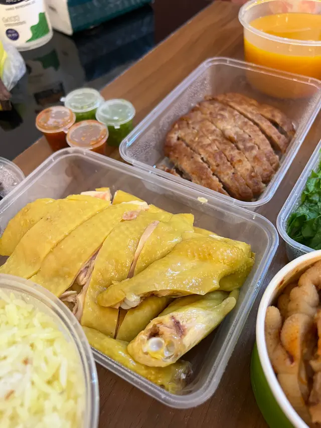 路過見到外賣有九折唔想等位,所以試一試海南雞飯(大)份量幾足,一個女仔會食唔晒。雞皮太厚,但唔算多肥膏。好多雞啫喱,所以有啲漿口,雞肉好滑,但雞味唔算好濃。整體嚟講係質素唔錯嘅海南雞。不過油飯令人好失望,香味唔足,而且係爛飯,亦冇好似坊間咁加足乾蔥、乾蒜或豬油渣增加口感。跟飯有經典三種醬汁,做足本份。隻豉油同平時食開嘅黑豉油唔係好似,質感比較稀。加$8可以有個湯本身想叫肉骨茶,但已經賣晒不過南瓜蘿蔔湯都唔錯,入面有一嚿豬肉,幾舊紅蘿蔔同埋南瓜肉,口感濃厚夠味足料個油飯實在太扣分,整體嚟講唔算太抵食查看更多