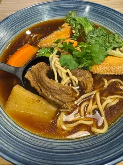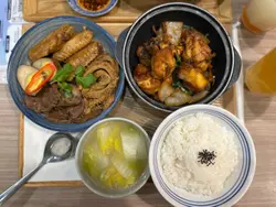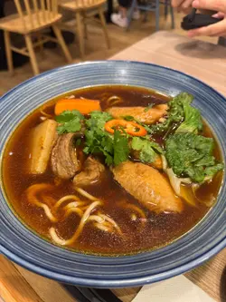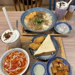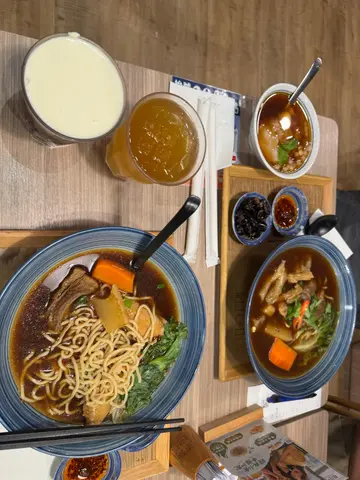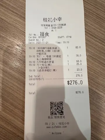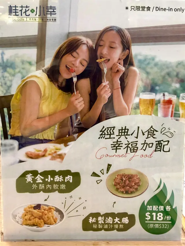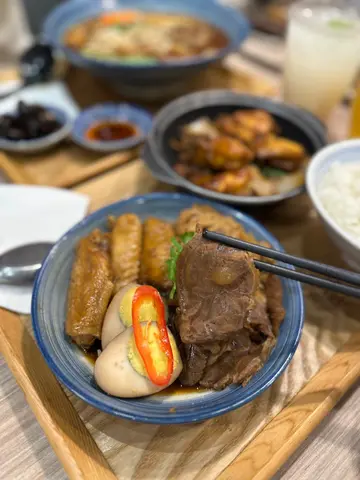 這天晚上去了吃桂花小幸,餐廳名字很美唷~是一間吃台灣菜的餐廳,還有售賣多款珍珠奶茶等的台式飲品。用上木系的裝潢,櫃上有一些書本,帶一點休閒的感覺。我們二人就各點了一個主食,另外點了一個小食和兩杯飲品。♡三盛台灣牛肉麵$88 🥢必點🥢有腱心牛肉、牛腩、牛筋,還有幾款湯底可以選擇,我們就選了養生清燉牛肉湯,味道帶點藥膳味道。還有微辣的紅燒牛肉湯和清雞湯等可供選擇。♡鹽酥雞排滷肉飯64雞排已經貼心切好一件件,方便客人進食,而且啖啖肉很大塊,再配上滷肉飯十分香口。♡台式小食拼盤$68拼盤有炸花枝丸、桂花雞翼、炸餃子、地瓜薯條,不過當日地瓜薯條賣完了,餐廳就幫我轉了做甜不辣。拼盤類我最喜歡雞翼,炸得很香脆,炸花枝丸也不錯,很大粒。·🧋飲品都可以除個人口味調教甜度,兩杯飲品我都點了少甜少冰。♡黑糖珍珠鮮奶$23黑糖的甜味配上珍珠可以當是晚餐後的一道甜品。♡雲頂紅霞$24由伯爵紅茶、厚奶、堅果雲頂調製而成,我喜歡堅果雲頂的口感綿密,還有堅果碎帶來的口感,整杯都帶有伯爵紅茶的香味。