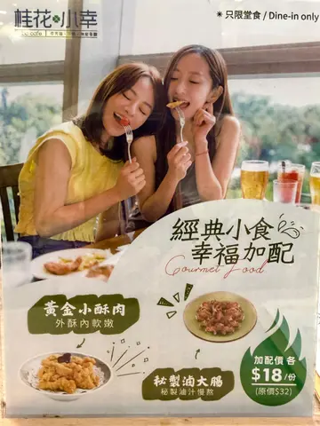 今次去咗「桂花小幸」食台灣嘢🧋,同我好耐之前嚟唔一樣,📱而家佢都變咗自助形式(order + 俾錢用自己部手機就可以)啱晒我啲I人🤣。餐廳入口隔離有佢嘅台式飲品店,可以俾人叫外帶。🥡⭐️三盛紅燒牛肉麵 🍜(腱心牛肉、牛腩、牛筋)🥩招牌牛肉湯底濃郁、仲有我最鍾意嘅嗰種美味又微微嘅辣,🥕搭配青菜與蘿蔔更添層次。牛肉塊軟嫩入味、份量充足,有晒三款-腱心牛肉、牛腩、牛筋。⭐️鹽酥雞扒🍗炸雞排金黃酥脆,外脆內軟!食親台灣嘢一定叫黎食!⭐️台式雞肉飯套餐🍱另一道雞肉飯定食,🐔雞肉絲量足且鮮嫩,搭配醬油、蔥花,米飯水準不俗。🥣定食配上花枝丸紫菜湯、涼拌青瓜、醬燒茄子、木耳和燙白菜,涼拌菜開胃,湯品清甜順口,整體搭配均衡。個人認為呢個餐比較健康,如果想食啲更加香口有味嘅,我會建議食鹽酥雞類型。⭐️荔香滿苿🍹飲品方面,我地叫咗一杯荔枝味道嘅台式飲品。都不錯的正常台式飲品嘅味道,價錢都算合理。因為佢另外有一個櫃位係台式飲品,變相商場多咗一間台式飲品嘅選擇。…查看更多
