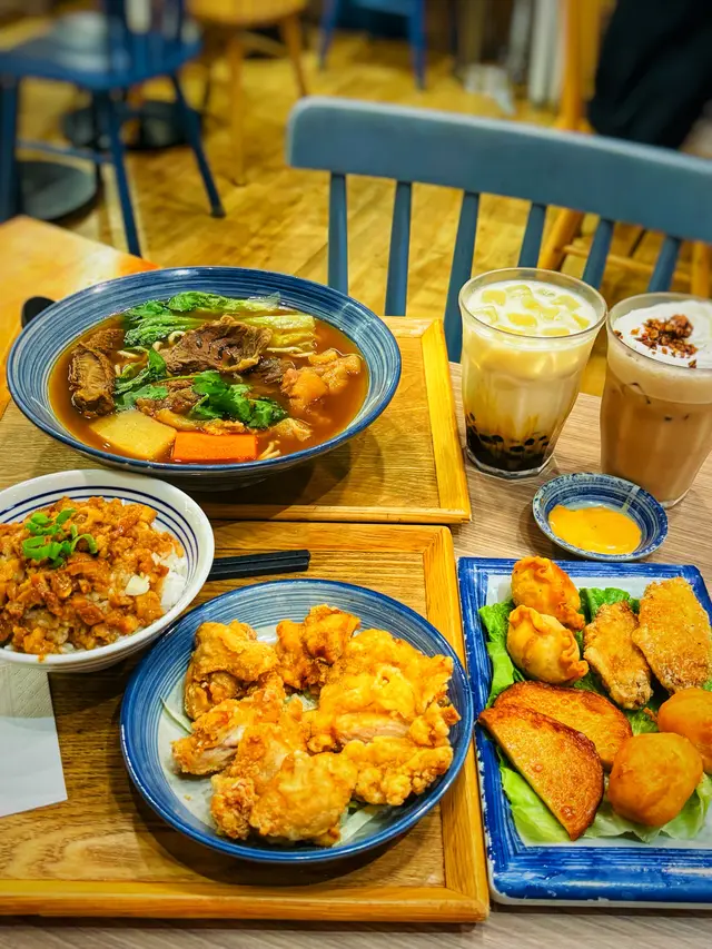 這天晚上去了吃桂花小幸,餐廳名字很美唷~是一間吃台灣菜的餐廳,還有售賣多款珍珠奶茶等的台式飲品。用上木系的裝潢,櫃上有一些書本,帶一點休閒的感覺。我們二人就各點了一個主食,另外點了一個小食和兩杯飲品。♡三盛台灣牛肉麵$88 🥢必點🥢有腱心牛肉、牛腩、牛筋,還有幾款湯底可以選擇,我們就選了養生清燉牛肉湯,味道帶點藥膳味道。還有微辣的紅燒牛肉湯和清雞湯等可供選擇。♡鹽酥雞排滷肉飯64雞排已經貼心切好一件件,方便客人進食,而且啖啖肉很大塊,再配上滷肉飯十分香口。♡台式小食拼盤$68拼盤有炸花枝丸、桂花雞翼、炸餃子、地瓜薯條,不過當日地瓜薯條賣完了,餐廳就幫我轉了做甜不辣。拼盤類我最喜歡雞翼,炸得很香脆,炸花枝丸也不錯,很大粒。·🧋飲品都可以除個人口味調教甜度,兩杯飲品我都點了少甜少冰。♡黑糖珍珠鮮奶$23黑糖的甜味配上珍珠可以當是晚餐後的一道甜品。♡雲頂紅霞$24由伯爵紅茶、厚奶、堅果雲頂調製而成,我喜歡堅果雲頂的口感綿密,還有堅果碎帶來的口感,整杯都帶有伯爵紅茶的香味。