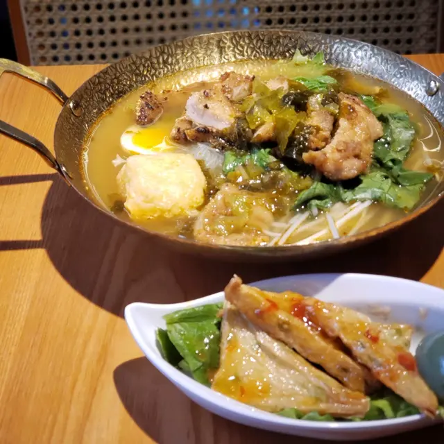 【油尖旺區】【梁慶記】再次喺勁趕時間嘅情況下經過旺角豉油街,要偷少少時間食飯就要一擊即中。必備元素係立即有位同埋快速上菜,見呢間麵檔好似 okay,行埋去一望原來係我之前同感應姐、變本姐食過佢哋北角店嘅梁慶記,嗰次印象都係一般,不過速度冇問題,就用你啦。叫咗 $68 嘅「大地魚湯麵一人套餐」,要嘅係「傳統雲吞湯麵」,揀咗粗麵嚟食。湯底真係好清,亦都有大地魚嘅味道喺度。而個麵就冇諗得咁出色,都係正正常常嘅水準。啲雲吞都係,有四粒,但係冇預期中咁正,都係普通咗啲,冇乜咩亮眼嘅位。我食到後段,有啲八卦咁加啲辣椒油吊吓個味,反而有驚喜,個辣椒油都唔錯喎。跟住食加 $8 嘅小食「金絲香芋酥」,都幾甜,不過又真係未食過咁嘅款而又係甜嘅芋頭酥,當食吓新嘢。嘢飲我加 $5 要「葡式自製樽仔焦糖咖啡」,可以啦。埋單 $81,合理。。。(地址:旺角豉油街74號地舖)呢間餐廳我寫過其他分店嘅用餐體驗以及食物,如果想睇,可以打以下 hashtag 搜尋返嗰次嘅用餐體驗記錄:東區分店:1am1654…查看更多