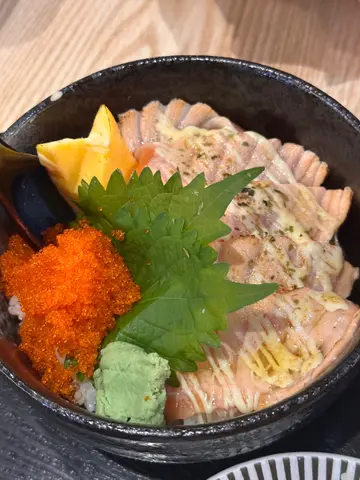 坐低未幾,「火炙三文魚蟹子丼」一上枱,香氣已經先行。三文魚面層輕輕炙過,油脂被熱力逼到微滲,帶出陣獨特焦香。魚肉入口即化,油潤得嚟唔膩,炙香同魚鮮之間拿捏得好準。蟹子一粒粒喺口腔爆開,鹹香細細,啱啱襯托出三文魚嘅甜。白飯微暖,調味清淡,令魚味更突出。 旁邊嘅「麵豉湯」清香滑口,鹹度適中,豆香自然,唔會太重手,飲完仲有淡淡甘味。 「雞肉棒串」就係另一種驚喜。雞肉嫩得嚟唔鬆散,外層微焦,撒上少少鹽花提味,食到中段仲有肉汁滲出。焦香、鹹香同肉香交織,完全唔搶丼飯風頭,反而互相襯托。 成餐日式得嚟唔造作,炙香、鮮味、鹹香都恰到好處,食完有種乾淨舒服嘅飽足感——唔係奢侈,而係靜靜咀嚼出嘅滿足。…查看更多