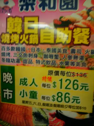 梨和園係任食ge韓燒, 有生同熟ge野食, 2樣都可以任食。佢d選擇都唔少架wo, 而且都ok。尤其係d熟食, 佢d熟食真係幾好食。有好多唔同ge菜, 佢又會不停refill, 加上佢d味道又好, 真係會係咁食d熟野架~ 而且因為平時韓燒都係食好多肉, 難得有菜食, 又好食, 真係好好呀。仲有d腸仔呀, 丸呀, 豬腳薑呀, 都好好食。如果唔忍得口, 甚而食熟食都飽架喇。佢d生野就唔係樣樣好食, 同埋成日都痴底, 要係咁換個板先得。佢個牛仔骨ok, 有骨, 又有d肥肉, 所以燒完都好林, 加上佢d味調得好, 所以真係幾好食。反而尤魚就冇咩味喇。不過間鋪太迫, d位好近, 而且油煙好勁, 食完一定會成身都係味。…Read More