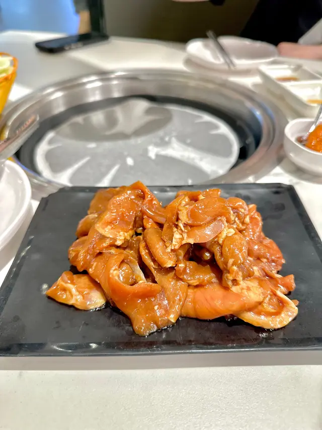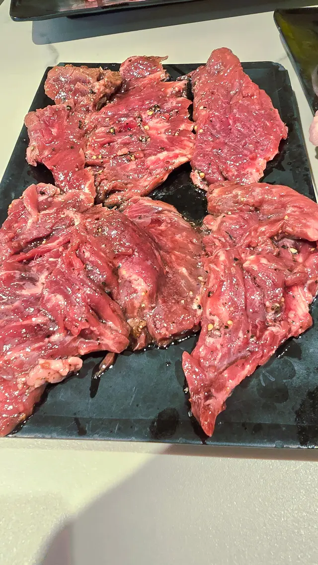 我們到香港科學園參加活動後,傍晚順路在「梨滿園韓國料理」吃任飲任食燒肉放題。價錢很實惠,而且五位送一位就更吸引,今晚韓燒主攻牛肉,細味後很推介:美國橫隔膜肉~又稱封門柳,是牛的胸腔與腹腔之間的肌肉,肉味濃郁、軟嫩多汁且脂肪比例少,是健康的首選食材。美國牛肩肉~是取自牛隻前肩胛,肉質嫩滑, 含有豐富的油花和間隙脂肪,適合香煎和燒烤。牛仔柳扒~是於牛隻的腰脊內側,肉質極為柔軟,而且油脂含量極低,也是我最愛吃的部位之一。薄切牛舌片~肉質爽滑可口,豐富的油花令味道更香濃。豬頸肉~又叫肉青,是豬的面頰至下顎之間帶有脂肪層的肉,肉質較結實而略帶有韌性,吃起來爽脆又有彈性,而且肉味濃厚,又有豐富油份,所以我們首先會燒烤豬頸肉。 帶子和海蝦~,除了燒肉又怎會沒有海鮮!炸物推薦:酥炸魷魚~、酥炸雞翼和酥炸豆腐,下單即炸,熱騰騰、卜卜脆,雞翼還有豐富肉汁。…查看更多