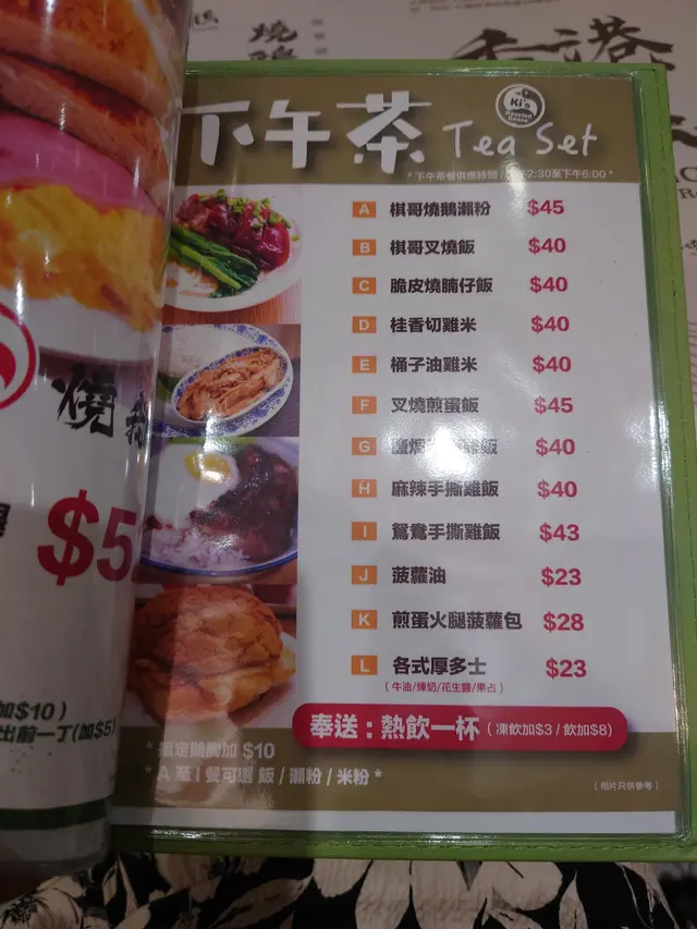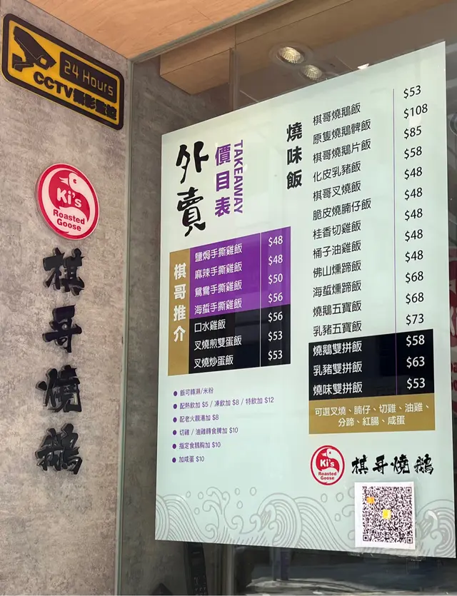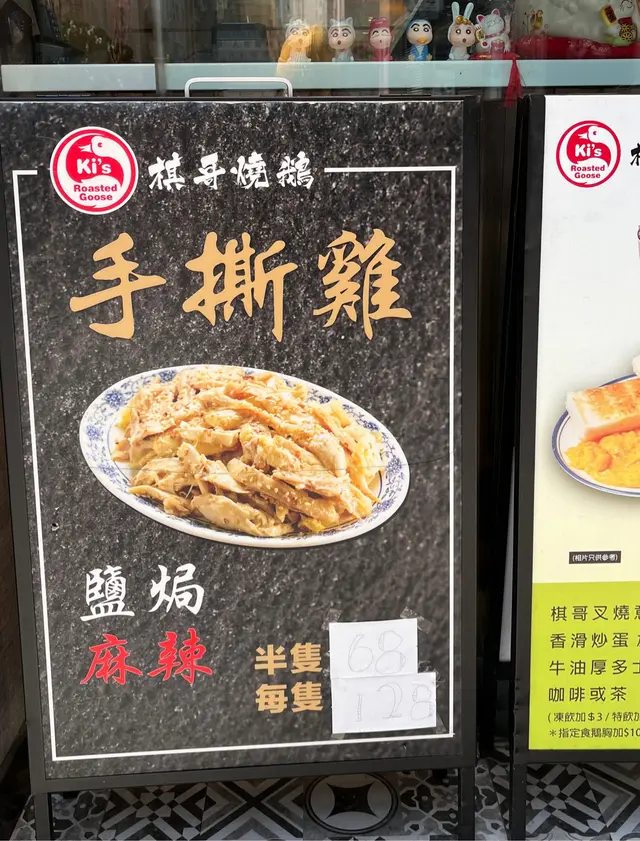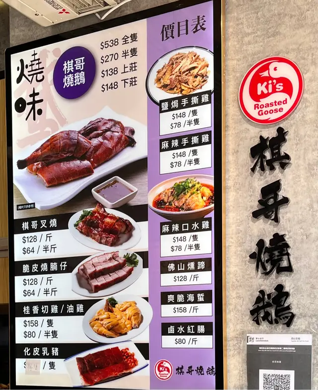 Ki's Roast Goose is a favourite of mine as there are two shops near me. The goose was always quite good and the char siu was delicious. But we discovered there was a branch in Tsim Sha Tsui right outside The One. Hungry, we decided to go in during afternoon tea time.Menu is in English and Chinese except for the afternoon tea menu which is in Chinese only. There is no 10% service charge.Boyfriend ordered the char siu with rice noodle. Portions were fine but the char siu was dry. Truely on the thin side with no actual fat on it. Tasted ok even though the meat was dry.I had the roast goose with rice noodle. It was mostly skin and not much meat. The meat was also dry. At least the skin had no fat on it.The food wasn't as good as my usual branch in Causeway Bay. Unsure if it's gone down in quality or it's just this branch. Service was friendly though.…查看更多