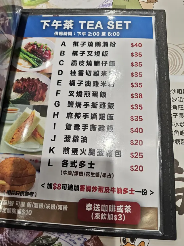 今晚放工正下著大雨, 在我們公司附近有 棋子燒鵝, 門面闊, 好亮麗. 立即 想食燒味餐. 門外有推薦食品, 外賣款式有多種. 玻璃櫃掛著的燒味, 觀感不俗. 燒鵝特別吸睛, 燒鵝頭多至數不清.餐廳面積大, 燈光明亮, 座位整潔闊落. 餐牌好清晰, 項目多, 全日常餐, 下午茶, 好正 !!我們點了 2人晚飯套餐. 有棋子招牌燒鵝, 單拼叉燒/燒肉, 有菜, 湯/茶, $228, 好扺食.先送來餐茶: 熱檸檬茶, 有檸香. 準備食燒味去膩. 例湯熱騰騰, 雞腳煲瘦肉湯, 無味精, 好飲. 蠔油菜心, 嫩綠少油, 爽口, 好健康. 招牌棋子燒鵝, 叉燒 各一碟, 送來了. 份量好滿意.燒鵝顏色立立令, 鵝肉厚厚, 少脂肪, 滲出陣陣炭燒香, 味香四溢, 鵝皮脆脆, 脆皮底下的鵝肉好鬆軟.配有秘制燒鵝酸梅醬, 點些醬汁很滋味, 送飯一流. 叉燒 , (可揀全瘦, 半肥瘦及肥义) 我們選擇了半肥瘦. 燒得香, 賣相也不錯. 用了五花腩肉, 吾肥有蜜汁. 不油膩, 真滋味.湯瀨粉, 把青蔥分隔開, 瀨粉好滑, 湯頭甜.配燒鵝, 一流好食. 白飯粒粒完整, 雪白分明, 用上靚米.招牌棋子燒鵝 好好味 , 食得非常滿意. 叉燒也不俗好回味. …查看更多