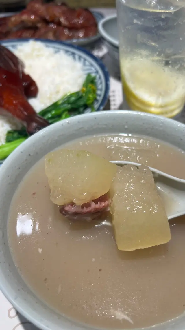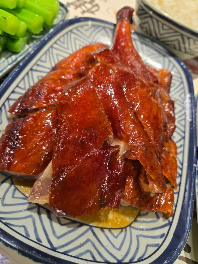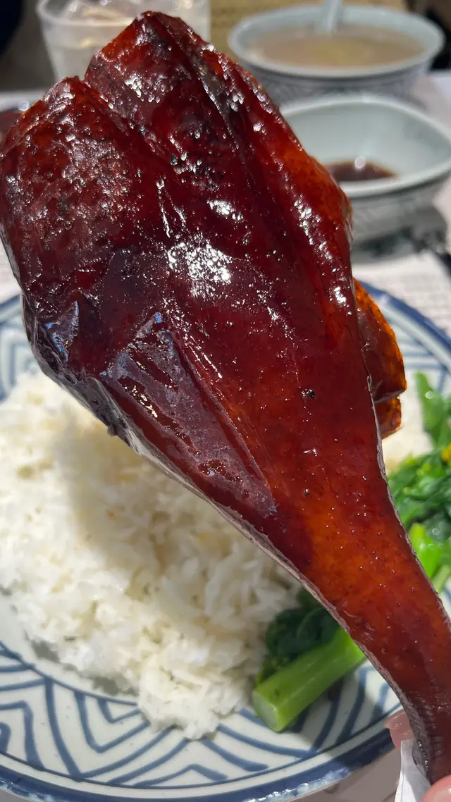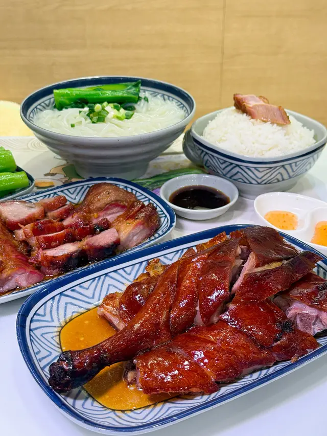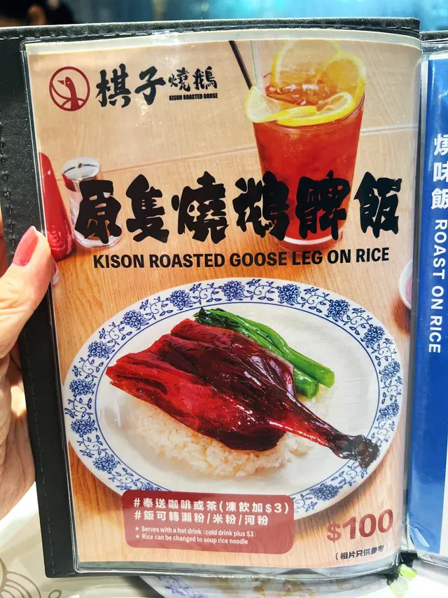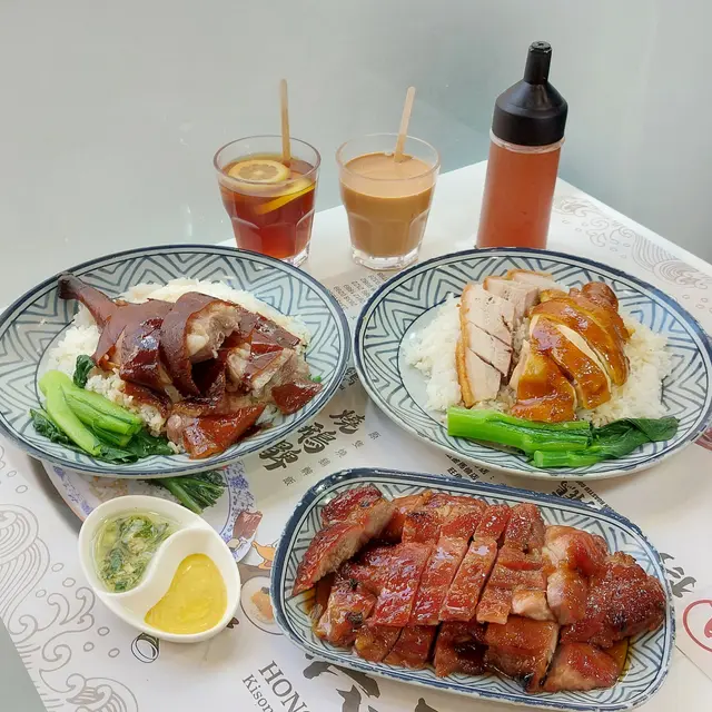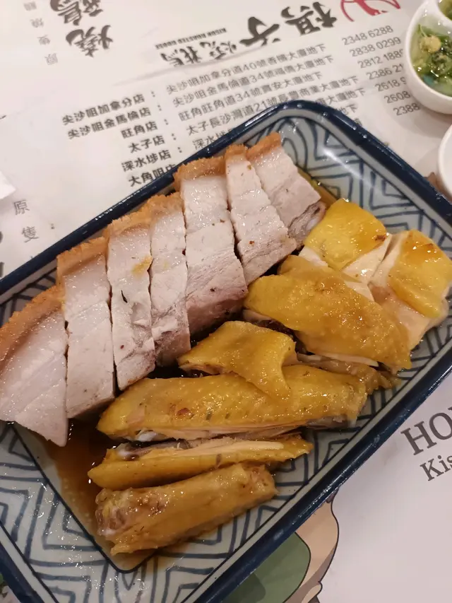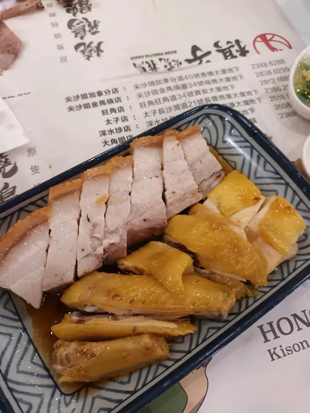 今晚放工正下著大雨, 在我們公司附近有 棋子燒鵝, 門面闊, 好亮麗. 立即 想食燒味餐. 門外有推薦食品, 外賣款式有多種. 玻璃櫃掛著的燒味, 觀感不俗. 燒鵝特別吸睛, 燒鵝頭多至數不清.餐廳面積大, 燈光明亮, 座位整潔闊落. 餐牌好清晰, 項目多, 全日常餐, 下午茶, 好正 !!我們點了 2人晚飯套餐. 有棋子招牌燒鵝, 單拼叉燒/燒肉, 有菜, 湯/茶, $228, 好扺食.先送來餐茶: 熱檸檬茶, 有檸香. 準備食燒味去膩. 例湯熱騰騰, 雞腳煲瘦肉湯, 無味精, 好飲. 蠔油菜心, 嫩綠少油, 爽口, 好健康. 招牌棋子燒鵝, 叉燒 各一碟, 送來了. 份量好滿意.燒鵝顏色立立令, 鵝肉厚厚, 少脂肪, 滲出陣陣炭燒香, 味香四溢, 鵝皮脆脆, 脆皮底下的鵝肉好鬆軟.配有秘制燒鵝酸梅醬, 點些醬汁很滋味, 送飯一流. 叉燒 , (可揀全瘦, 半肥瘦及肥义) 我們選擇了半肥瘦. 燒得香, 賣相也不錯. 用了五花腩肉, 吾肥有蜜汁. 不油膩, 真滋味.湯瀨粉, 把青蔥分隔開, 瀨粉好滑, 湯頭甜.配燒鵝, 一流好食. 白飯粒粒完整, 雪白分明, 用上靚米.招牌棋子燒鵝 好好味 , 食得非常滿意. 叉燒也不俗好回味. …查看更多