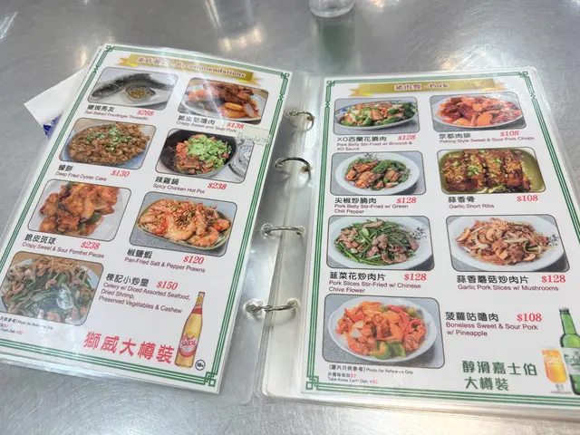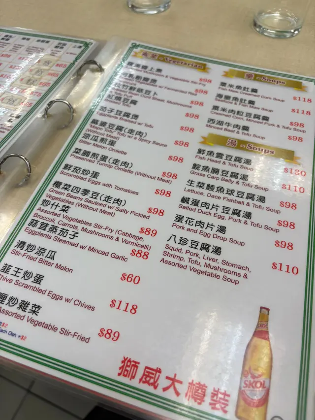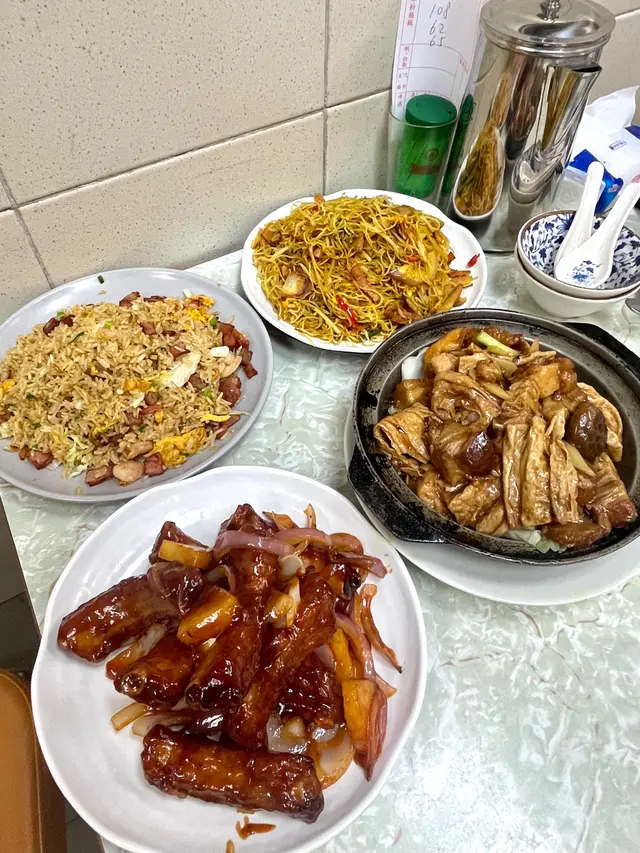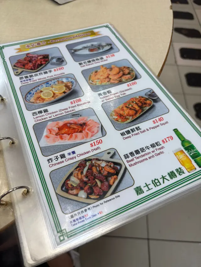 環境闊落,有冷氣 ,菜單氣氛都是大排檔格局,但是非常衛生,位於街市上方,屬於舊式飯店的一種,對於新世代來說真的超新穎又富香港特色,晚上去街市簡直像探險一樣有趣。見到有些不同國家的遊客都有慕名而來,相信是因為有多種香港經典小炒及煲仔特色菜可以在此食到,同時菜式亦多樣化,於是湊熱鬧點了兩道菜餚。首先上菜速度超快,點了兩道有鑊氣的煲仔菜,蒜子火腩大鱔煲,魚鱔大片,質地彈牙,加上火腩連皮,還有腐竹、冬菇仔等吸汁食材,食了令人懷念的菜色滋味,然後是薑蔥魚頭煲,大蔥吸入醬汁,當菜食也很棒,由於是中式綠色段位的大蔥,原本作闢腥之用,不過因為經過油爆的關係非常翠綠鮮嫩,是非常好食的蔥!…查看更多