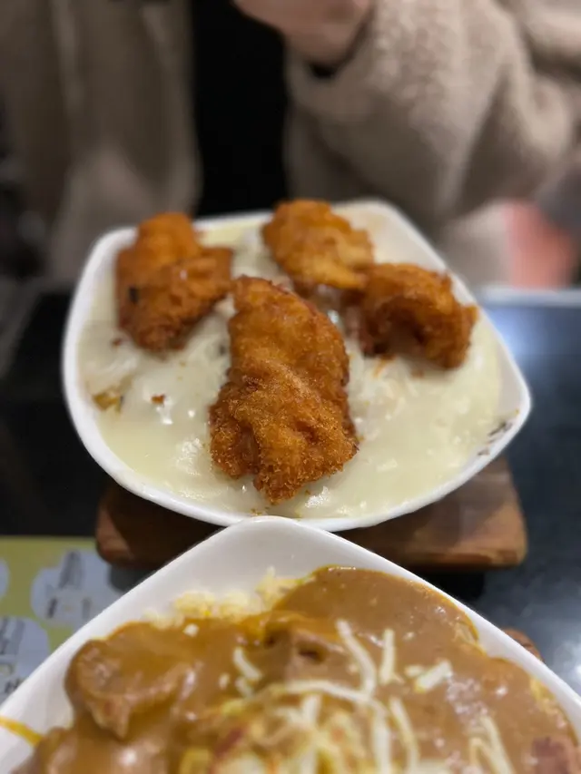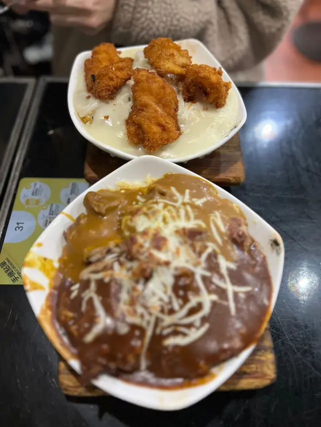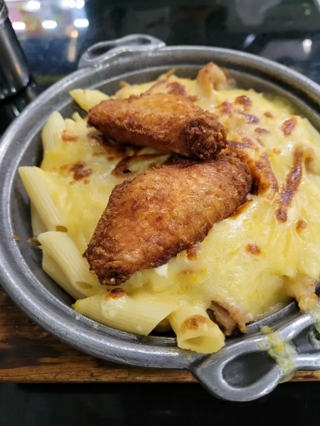今日去天水圍買模型,之後去新北江搵野食12:00左右見到呢間舖冇乜人,應該啱啱開舖,所以就同朋友一齊入去食韓式烤肉+芝士腸南瓜汁焗長通粉厚厚嘅芝士覆蓋住長通粉,烤肉同長通粉份量多,芝士腸印象中都有三四條。南瓜汁感覺似粟米汁,冇乜南瓜味+$6凍奶茶朋友食嘅係鐵板海鮮炒烏冬,份量都多雜錦海鮮以炸魚柳最大件其實呢間舖都幾多人食,越食越多人入座,外賣訂單亦都一路做,但店舖座位都有啲窄,坐滿人嘅時候起身都幾麻煩查看更多