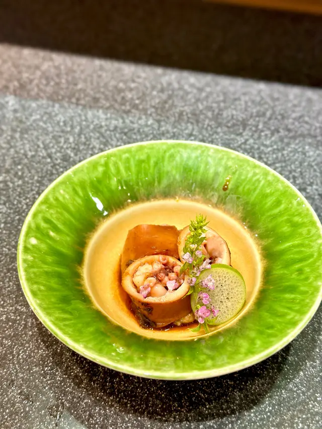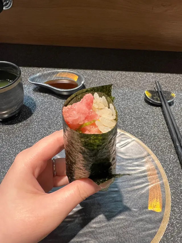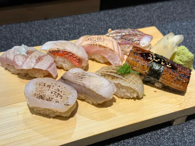 第一次試森戶既Omakase, 揀左$380果個set,夜晚都有$380 set揀👍🏻🔹前菜水雲加蕃茄,水雲本身好酸,但同蕃茄一齊食就中和左,好味。🔸壽司十貫啲魚生都幾新鮮既,不過相比係其他餐廳既Omakase,依度每款面頭加既野或醬汁既配搭,都比較普通單調。但係咁樣就更加可以食到本身魚生既原味,我認為都係個人喜好,有啲人中意每款壽司都配左唔同醬,食落味道或變化會大啲。好多時食Omakase,啲醬汁同配料都會令到成件壽司好驚喜。不過係度食就無咩驚喜,主要係食壽司原本既味道。🔹手卷吞拿魚蓉,入面加左小小黃蘿蔔粒,令到口感多左。🔸湯係一款胡椒豆腐鯛魚湯,不過飲落好辣,好似中或胡椒豬肚湯咁,我覺得食完壽司,飲依款湯,感覺有啲怪。🔹甜品有牛奶、紅豆、冧酒提子味揀。好食過平時食開大牌子果款。另外再叫左小小野食🔸雞泡魚干 $78同我想像中有小小唔同,佢係比較濕身,食落去好黏牙,唔算太重雞泡魚味。🔹螢光魷魚 $48依個有驚喜,入口有小小酸酸地既檸檬味,好開胃。🔸黑豚五花腩 $48好juicy,啲油脂出曬黎,好味。🔹三文魚壽司 $12@1,火灸鰻魚壽司 $30,北寄貝壽司 $13星期一至五有全單85折,好滿足既一餐👍🏻…查看更多