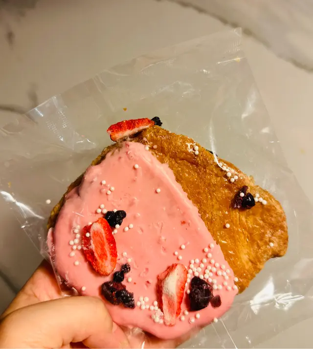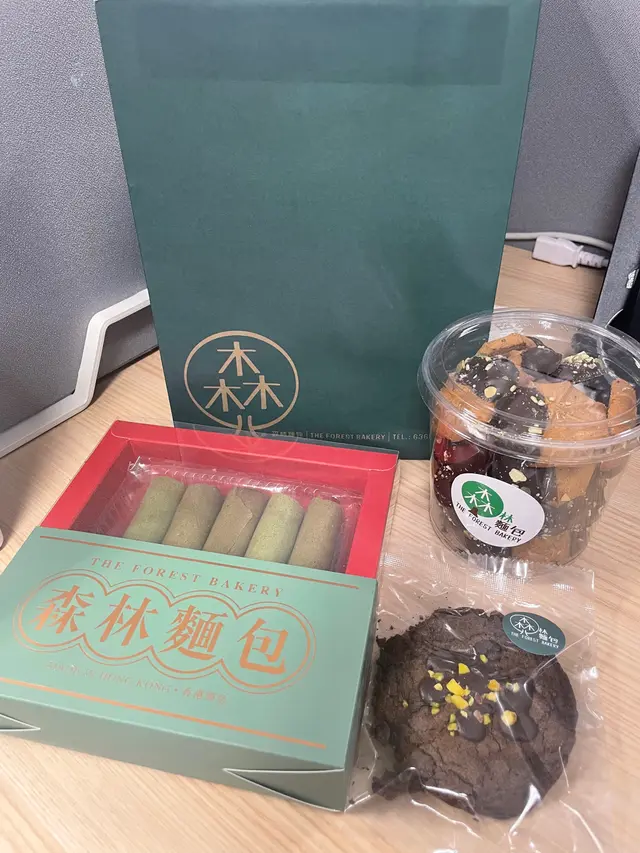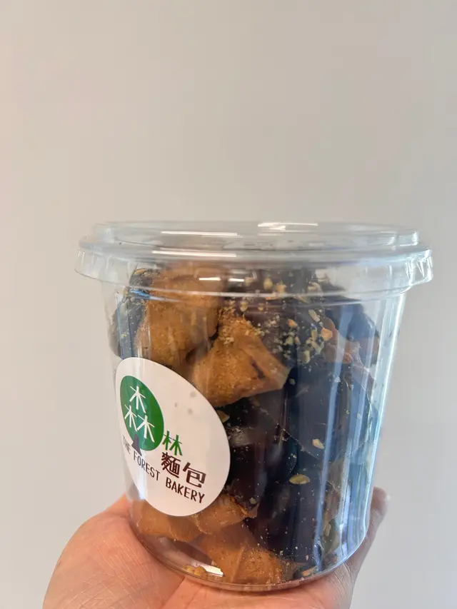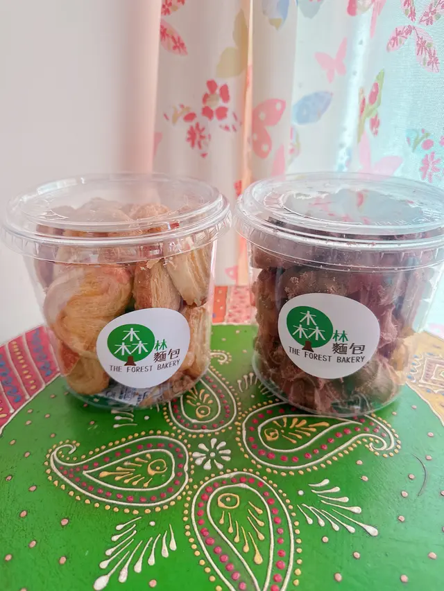 叉燒菠蘿千層酥$26🌟🌟🌟🌟叉燒菠蘿千層酥吃下去很像茶樓吃到的叉燒酥,但更好吃,菠蘿有點像新鮮菠蘿,不是罐頭裝,酸甜酸甜的。千層酥很讚,如果可以再多一點叉燒就更好了。這次本打算叫埋奶醬丹麥酥,結果很快賣光了,只能下次再買….咖啡味曲奇$54/膠罐🍪🌟🌟🌟🌟咖啡味曲奇很鬆脆,咖啡味濃,但略厭太甜,如果可以少糖會更合口味。這間服務很好,很久沒看過麵包舖有試食,曲奇少量麵包,跟月餅都可試食,體驗很好。…查看更多