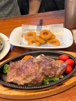 北角平民美食推介🤩依間餐廳對北角既市民唔陌生😎可以成為北角人番工番學既飯堂,所有野平靚正,又有水準😚.🥩牛肉眼扒 $94牛肉眼扒的肉質鮮嫩,油花均勻分布,帶有豐富的牛肉香氣♨️用鐵板既形式拎出黎😍加上紅酒汁,香氣四溢🈵牛扒外表微焦,但入面保留左肉汁💦配菜有蕃茄,西蘭花🥦同薯條🍟一塊10oz 都好夠食.🐮焗牛王飯面層超多芝士🧀醬汁,香噴噴的米飯🍚吸收左牛肉的精華😙搭配融化的芝士,口感滑順㊙️唔經唔覺會食晒成碟飯