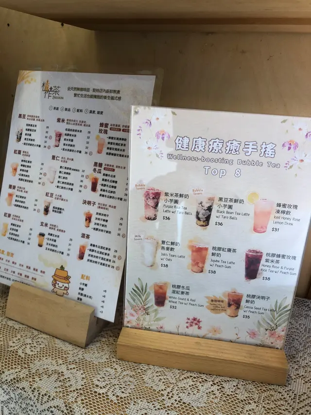 「植作茶」係嚟自台灣嘅茶飲舖 所有飲品都係全天然無咖啡因 主打健康台式飲品 飲得健康好重要 佢地嘅飲品會比平時嘅茶飲店少糖啲架👍🏻你地可以依照自己嘅體質 同埋想改善嘅咩而去搵自己想飲嘅嘢飲 menu上面有哂分類添架🫶🏻🌹 桃膠蜂蜜玫瑰紫米茶紫米有好多功效可以補氣補血、高纖維、改善皮膚健康等等而玫瑰一聞到已經好舒服而佢都有美容養顏嘅功效 仲可以改善肝氣鬱結呢個問題添 一飲落去飲到好香嘅玫瑰味 用料都好十足杯飲品好重手桃膠軟硬度啱啱好 我地簡咗半糖 甜度啱啱好 飲落就覺得好舒服🥤紫米茶鮮奶小芋圓呢杯飲品都係228kcal(以全糖計算) 飲落去好香嘅紫米味我地簡咗半糖 我地建議可以簡少糖 因為半糖差咗少少糖份 不過都係好香嘅紫米味 仲有大量嘅小芋圓好有咬口🤓…查看更多