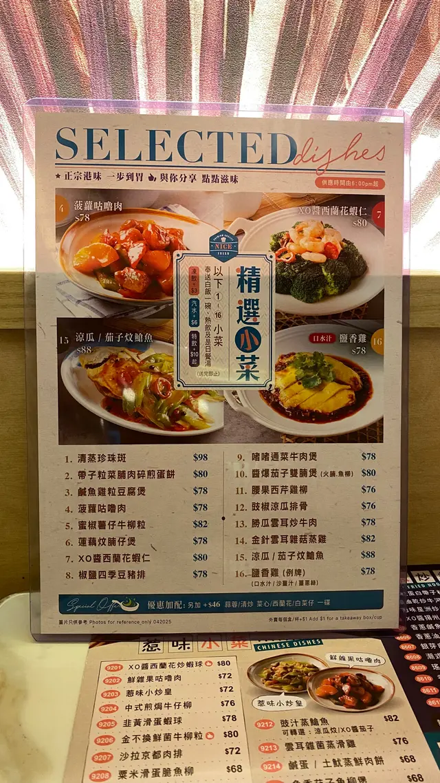 6點半在秀茂坪商場搵食。二人晚餐,158元,可選A+B兩款菜式,配白飯兩碗和中式湯兩碗。A款有5樣菜式可選,其中兩樣是魚,因為怕不夠新鮮所以沒㨂,選了瑤柱扒菜膽雞,味道濃,雞就比較腍身,是雪藏雞,無雞味,小棠菜正常。B款就很多選擇,我們選了蜜桃咕嚕肉,蜜桃很少,洋蔥很多,咕嚕肉調味和質感算是不錯,不會一團炸粉那樣,豬肉腍,外皮如果能脆一點就好了。不過以這樣價錢,坐得舒舒服服,又不用等位,份量多,算滿意了。…查看更多