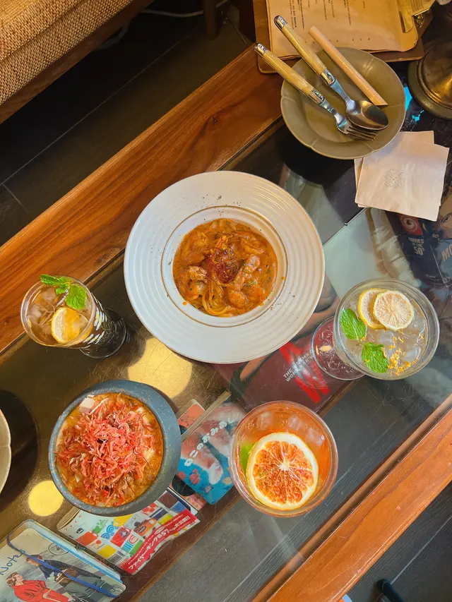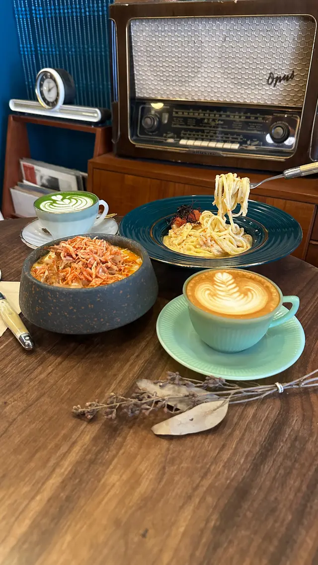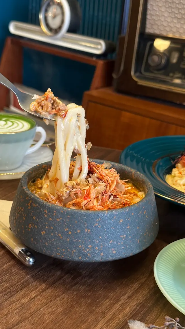 𝔹𝕠𝕠𝕜𝕞𝕒𝕣𝕜左好耐終於來試試😍朋友生日揀左呢間𝕔𝕒𝕗𝕖來慶祝🎂店內佈置滿懷舊小擺設及舊式傢俬🪆環境充滿懷舊復古氣息門外擺放𝟚張木椅吸引途人的目光👀鍾意影相的朋友不要放過😜處處都是打卡位📸係網上訂位有分𝟜個時段⏱️用餐限𝟡𝟘分鐘⏰可以註明揀坐靚靚𝕤𝕠𝕗𝕒位食野😂主打咖啡,蛋糕及輕食等由於揀左𝟛𝕡𝕞時段有部分野食賣晒🥲如果揀較早時段食物選擇會多啲櫻花蝦豆乳擔擔讚岐烏冬🍜湯底質地濃稠,食到濃郁的豆乳,表面舖滿櫻花蝦,仲有豆腐,肉碎及木魚絲,烏冬滑溜彈牙且掛汁,有點似食擔擔麵的感覺😂,口感層次豐富幾特別💯虎蝦叻沙意粉🦐🍝4隻剝好殼的虎蝦🦐爽口彈牙,意粉混入叻沙醬汁食到好濃的椰香味,令每一條麵超掛汁好𝕔𝕣𝕖𝕒𝕞𝕪相當惹味😋開心果忌廉戚風蛋糕🍰戚風蛋糕口感鬆軟,表面塗上開心果醬味道比較突出,仲有2層開心果忌廉及開心果碎,提升層次感豐富❤️桂花蜜檸檬梳打🍹梳打水加入桂花蜜及檸檬乾,桂花味道清香,飲落甜甜地好清新西柚檸檬草蜜桃烏龍茶🍹以烏龍茶為基底,加入西柚、檸檬草和蜜桃🍑,西柚味比較突出,仲食到西柚果肉有咬口𝕐𝕦𝕫𝕦 ℂ𝕠𝕗𝕗𝕖𝕖 𝕄𝕠𝕛𝕚𝕥𝕠 𝕊𝕠𝕕𝕒🍹估唔到咖啡混入柚子及梳打可以咁夾,柚子中和了咖啡的苦澀,好易入口…查看更多