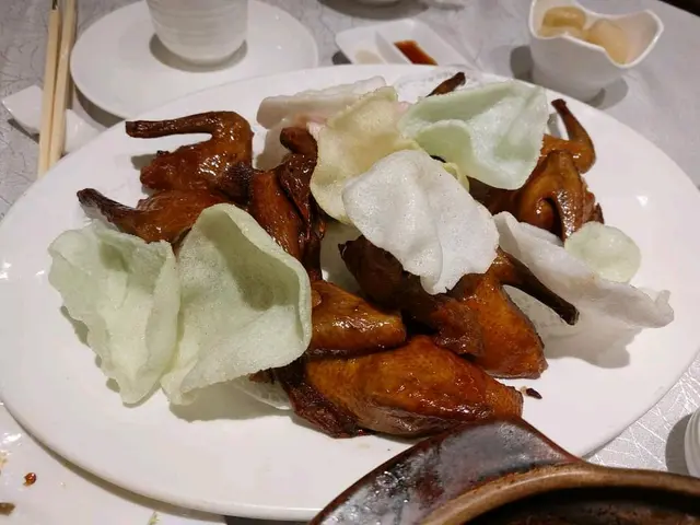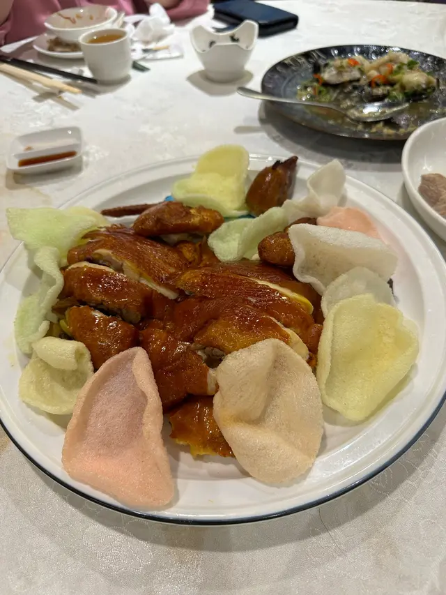 雖然餐牌中嘅乳鴿為第二道菜,不過,個乳鴿就好似平時食酒席嘅炸子雞咁,近尾先壓軸登場。乳鴿配埋啲七色蝦片,喺呢度嘅招牌,不愧為招牌菜式,唔單止炸得皮脆肉嫩,啲乳鴿又醃得入味,而且,相對嚟講都較大隻,食到啜晒手指。