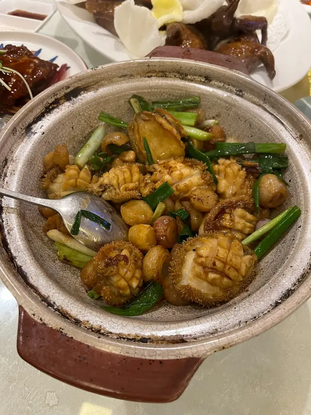 突然間一室香氣四溢,原來個乾煸鮑魚煲提早登場,放上枱仍然仲喺吱吱聲,熱力逼人。啲鮑魚鎅晒花,所以,入口更加入味,而且,口感柔韌有彈性,此外,就連啲蔥都非常好食。