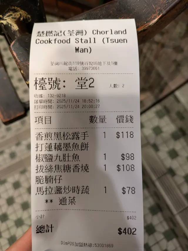楚撚記大排檔 (荃灣) 網上訂座即賺Rice Dollars 網址: https://s.openrice.com/QrbS0gM4A00 地址: 香港荃灣川龍街118號百悅坊地舖至1樓 電話: +852 39973661