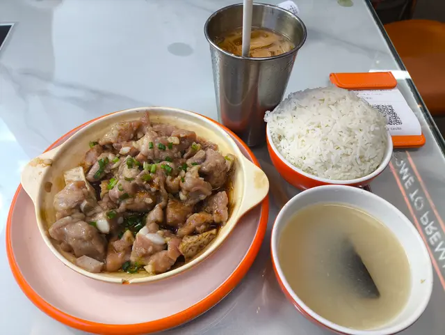 尖沙咀呢間極上冰室真係好多人氣,午餐時段到店已經人山人海,要搭枱,坐低即刻送上點餐碼,咁就即刻掃碼睇下有咩好食,見坐隔離呢個蒜香荔芋蒸排骨幾吸引,咁就立刻點了這個午市套餐,仲包飲品同埋餐湯,餐湯要咗中湯,係冬瓜湯嚟,都幾好飲。蒸排骨一陣就送上,排骨既份量好多,味道又唔差,荔芋好淋入哂味,個汁好味兼好下飯。[米饭]口味:🥚🥚🥚[薄荷]环境:🥚🥚🥚🥚[服务铃]服务:🥚🥚🥚🥚[糖果]性价比:🥚🥚🥚…查看更多