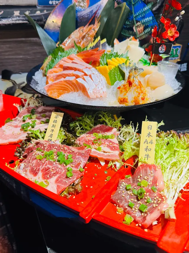 昨日跟麻雀腳一行四人相約去旺角的「極上帝王水產」嘆午市放題,這裡以豐富的日式料理選擇和高性價比聞名,而午市特長時段更有九折優惠,每人埋單 $300 有找,真的非常吸引。放題選擇各式其色;日料、烤肉、火鍋所有用具都已經準備好,富香港特色的高效。這裡的烤肉選擇十分豐富,豬牛羊雞等各種部位應有盡有,甚至還有大量新鮮蔬菜供選擇。我們幾個人分工合作,有人負責韓式烤肉,有人則將肉類放入火鍋邊爐,兩種吃法各有千秋!肉質鮮嫩多汁,尤其是各種不同腌法的雞翼和牛肉,烤得剛剛好,香氣四溢。食放題當然少不了主角級的刺身拼盤!內容實在豐富:牡丹蝦、甜蝦、八爪魚、帆立貝、希靈魚、赤背、蟹柳、三文魚,還有特別的泰式生蝦!每款刺身都非常新鮮,尤其是牡丹蝦和帆立貝,質感彈牙,鮮甜無比,讓人忍不住一口接一口。這裡的壽司不僅精緻,魚生也相當新鮮。在常見的三文魚壽司、吞拿魚壽司、帆立貝壽司上,可選擇加上黑松露,滿足我們挑戰味蕾的需求。炸物方面也是水準之作,炸廣島蠔外皮酥脆,內裡多汁,完全鎖住了蠔的鮮味。還有令人驚喜的芝士漢堡扒,外層金黃酥脆,切開後芝士流心,配上濃郁的肉香,令人一試難忘。飲品也算應有盡有,啤酒汽水果汁和茶任君選擇。還有些雪糕雪條以及啫喱布甸等甜品;算是不錯的壓軸之選。四人消費,每位盛惠$300有找,確實超值。…查看更多