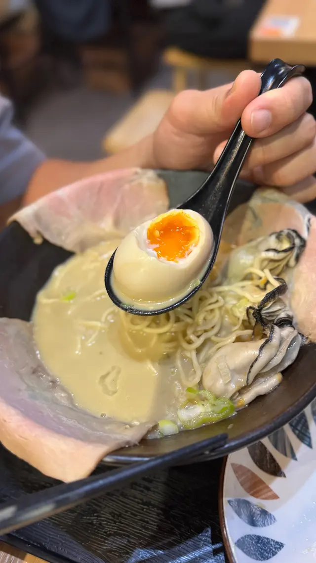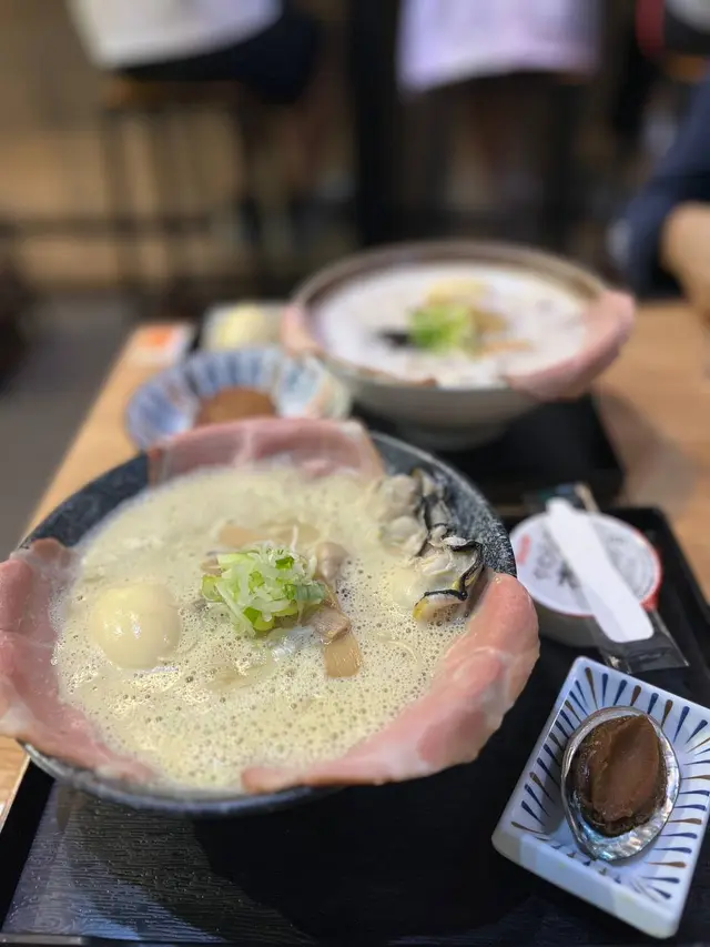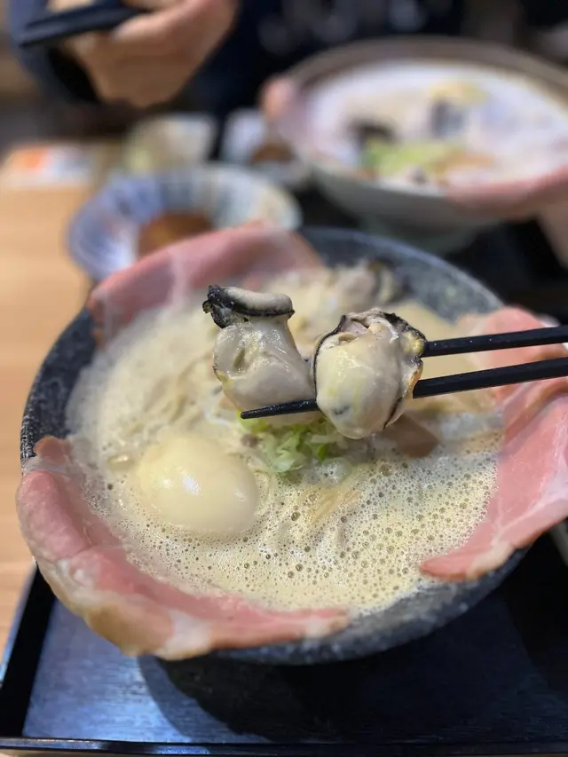 朋友介紹話呢度啲拉麵正,知我鍾意食日本嘢就一於捉我嚟試~果然冇介紹錯!🤤🦪極之真牡蠣櫻花蝦醬油湯底拉麵湯底真係濃到冇朋友!一上枱已經聞到超香櫻花蝦味,仲要鋪滿成碗麵,睇見都流口水~配料多到嚇親:叉燒軟淋、筍爽脆、溏心蛋流心正到爆!最驚喜係有成幾粒肥嘟嘟嘅牡蠣同埋磯煮鮑魚,鮮味十足,每啖都係享受!🐟真鯛魚白湯拉麵魚湯控必點!個湯又滑又濃,飲落完全冇腥味,仲有陣陣奶香。魚肉嫩滑到夾都夾唔起,入口即化~🍜追加彩蛋個湯底咁正,一份麵真係會唔夠喉!如果想加麵,碗邊會比個「叮叮掣」,㩒一㩒就有替玉送到,真係忍唔住encore多個麵,記住食完先好㩒,掛湯力一流!🍹飲品都要讚下提子同蜜瓜梳打都係日本直送,氣夠足又唔會太甜,同濃湯拉麵超夾~🎁每日驚喜叫一碗拉麵就有嘢送,今晚店家送咗杏仁奶凍同紅豆大判燒,奶凍滑溜溜,大判燒外脆內軟,為成餐飯畫上完美句號~總結:湯底贏晒!配料十足!麵質勁正!一定會再encore~👏🏻…查看更多