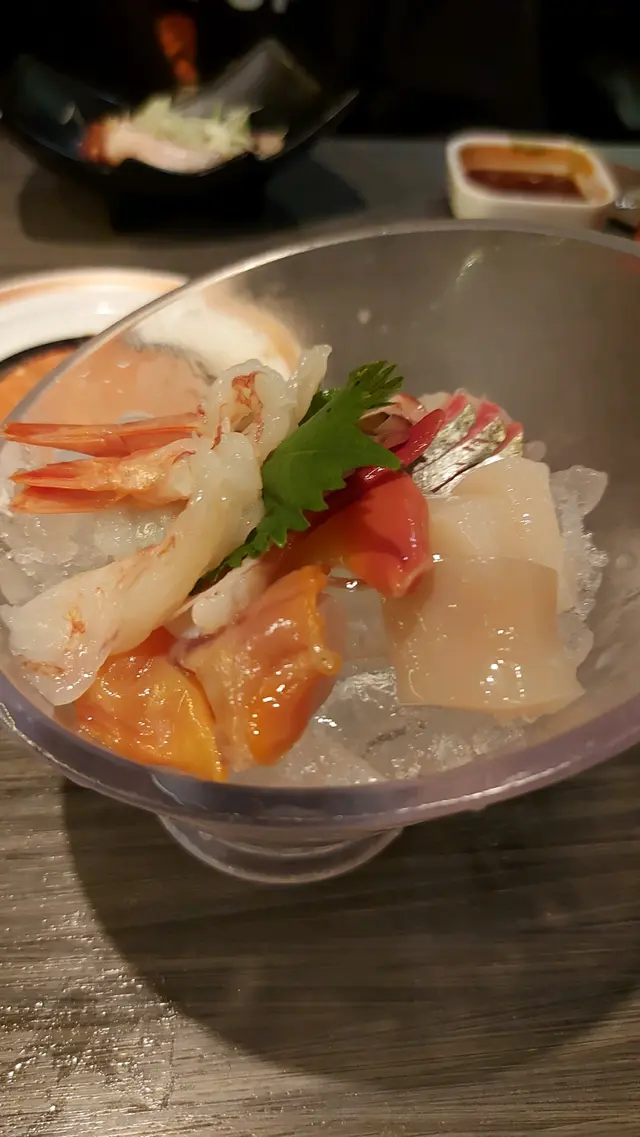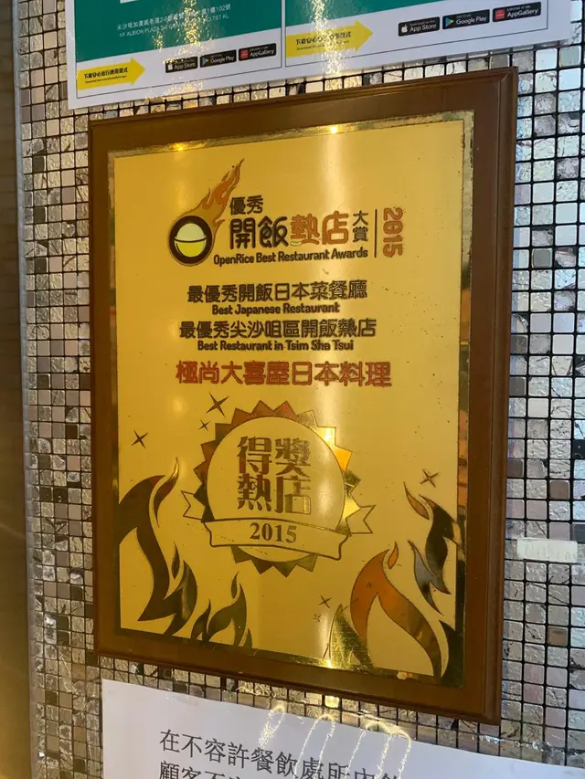 同朋友行完利時,她說好像很久沒吃放題,就近近地來到極尚大喜屋~沒有預訂座位,walk in不用等位。2小時自選時段,每位$288加一。掃瞄QR code點餐後,食物都好快送上。刺身質素不錯,油甘魚﹑帶子﹑池魚﹑劍魚腩﹑象拔蚌﹑赤貝等,點完一round後又再點~~~辣酒煮花螺,辣度足幾惹味,而且不會太油膩。極尚咖喱蟹,咖喱味道帶微甜,味道香濃。味道不錯,只是拆蟹有點麻煩,蟹肉不會太霉。鹽燒牛舌及燒雞軟骨,不會燒得太乾身。牛舌還帶點黑椒香。蒜片炒牛柳粒,牛柳尚帶有肉汁,整體味道幾香,不錯啊!風味淋燒魚干,帶微甜,又不會太乾硬,朋友幾喜歡吃這款魚干,所以都有encore!海膽軍艦,海膽有淡淡的甜味,唯紫菜還是有點稔,不夠脆。壽司還有海鹽左口魚邊及松葉蟹膏燒赤蝦,前者是穩打穩紮之選,左口魚充滿魚油份香~~反而另一款的松葉蟹膏不太突出。什菇露筍炒珊瑚蚌,充足的蒜與牛油香,珊瑚蚌不會炒得太老,仍夠爽脆!雪花牛肉鍋,湯底夠濃又香甜,牛肉大片,質感軟嫩~~不錯啊!!天婦羅的脆漿略略厚了一點點,尚可接受。炸物炸得香口惹味,幾款都令人吃得夠滋味,尤其芝麻雞翼充滿肉汁!!唯西京燒比目魚稍為遜色,質感較為乾硬呢~~極品瑤柱花甲粥,整鍋粥都沒有那陣鮮甜味,兩者味道獨立。就各款料理而言,極尚大喜屋的食物質素都算不錯呢~~~…查看更多