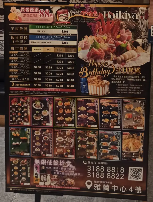 一出旺角站就見到同「極尚大喜屋」👀直接上去食放題😬.⚠️此餐廳收取10%服務費💰.晚市成人放題(2位)🍽️套餐$596💰.刺身🌊套餐包含💰幾款刺身都新鮮👍🏻松葉蟹腳味道鮮美,啖啖肉🦀馬刀貝肉質豐厚爽彈🐚.壽司及手卷🍣套餐包含💰魚籽櫻花龍蝦沙律卷味道清新🦞加上魚籽卜卜脆嘅口感😆幾得意😬.一品料理🥢套餐包含💰 估唔到有漁港風情の深情明火烤魚🐟入口酸甜番茄味但又帶孜然香🍅🌶️.炸物🍤套餐包含💰香港仔避風塘瀬尿蝦外殼香脆🍤以炸蒜、淮鹽炒香🧄🧂蝦肉頗鮮甜🤤.燒物🔥套餐包含💰推介特色焗溫室啡菇🍄🟫大啡菇加入黑松露🖤煙肉烤焗🥓十分香口😋.自助區🍽️ 套餐包含💰有青口、海蝦🦐芝士焗西蘭花🥦日式餃子、小丸子🐙蒸魚🐠鹽水鴨🦆姬松萁海星烏雞湯⭐️菜干豬肺湯🫁點心🥟醃漬物🫚👅沙律🥗前菜🫛🐓.甜品🍮套餐包含💰有椰汁燉鮮奶🥛軟雪糕、雪糕🍨雪條🍦布甸、糯米糍、泡芙、甜品杯🧁乳酪🫐🍓豆腐花🥣芋圓仙草凍、水果🍈🍉🍎糖果等🍬必食極尚椰皇燕窩燉蛋白🥥鮮嫩蛋白濃郁椰香同奶香😋加上燕窩,十分養顏☺️.飲品🥤套餐包含💰有清酒🍶白酒、梅酒🥃燒酒🍾紅酒🍷果汁🧃椰青水、茶類飲品🍵涼茶飲品🌼汽水🫧乳酸飲品、荳奶🍼啤酒🍺珍珠奶茶🧋熱飲☕️…查看更多