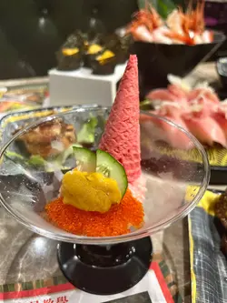 位於元郎的極尚大瀛喜日本料理.環境高檔大氣,裝修精緻有格調,佈局寬敞。刺身類有三文魚、象拔蚌、帶子等,食材新鮮度極高,三文魚紋理分明,象拔蚌爽脆清甜,帶子鮮嫩多汁。藍鰭吞拿魚刺身更是脂香濃郁,細膩綿密,幾乎感受不到纖維感。每一款都能展現出食材本身的優質品質,擺盤也很精緻,冰底襯托下視覺效果極佳。二、壽司類焦糖牛奶鵝肝壽司:鵝肝經過焦糖的調味,焦香與奶香融合,入口即化,層次豐富,是創意壽司中的佳作。極尚花之戀:三文魚的鮮與壽司醋飯的酸咸平衡得很好,經典款也能做得很出色。三、熟食類鐵板鵝肝多士:鵝肝煎得外微焦內軟嫩,搭配多士的酥脆,一口下去,口感豐富,香氣十足。鹽焗大頭蝦:蝦的個頭不小,鹽焗的做法很好地鎖住了蝦的鮮味,蝦肉緊實彈牙,帶著淡淡的鹽香,原汁原味。豉汁蒸鱔:豉汁的香味完全滲入鱔肉中,鱔肉軟嫩入味,豉汁的咸鮮和鱔魚的鮮美融合得恰到好處。酥炸鮮蠔:外皮酥脆,內里的生蠔鮮嫩多汁,也不會過於油膩,能吃到生蠔的鮮甜。金牌紅燒乳鴿皇:乳鴿外皮酥脆,肉質鮮嫩多汁,咸香可口。四、甜品燒榴蓮:榴蓮果肉香甜綿密,經過烤制後,香氣更加濃郁,喜歡榴蓮的食客一定不能錯過。…查看更多