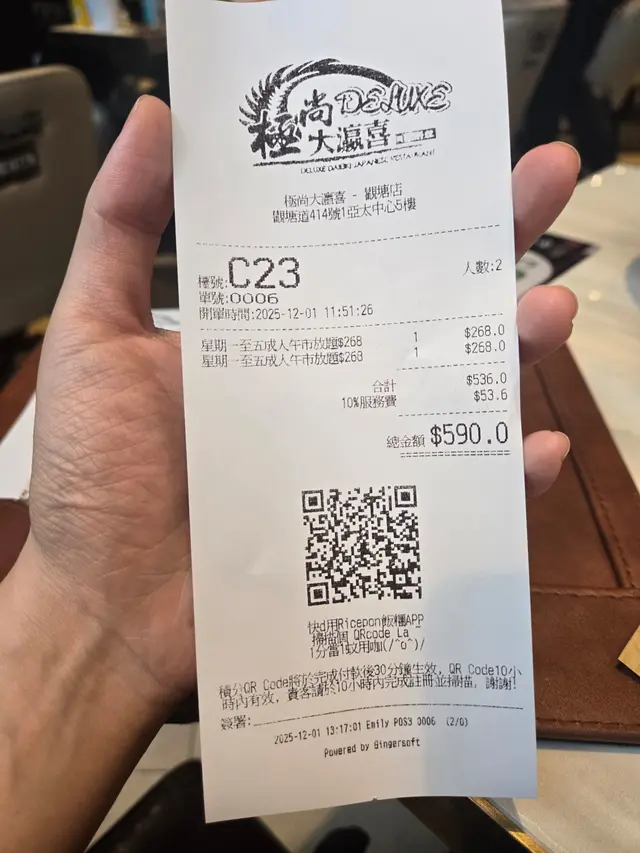 極尚大瀛喜日本料理 (觀塘) 網址: https://s.openrice.com/QrbS0DTC700 地址: 香港觀塘觀塘道414號1亞太中心5樓 電話: +852 31882628