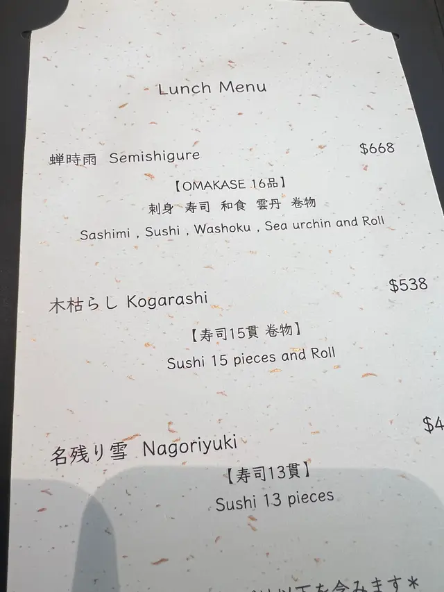 天后站附近有好多食日本菜餐館,今日就去咗「榊原」,位置相當方便!Lunch menu 有3款,而我哋就揀咗蝉時雨 ($668/位)有16品,當中包括刺身、壽司、和食、雲丹和卷物!每逢食日本菜,我哋都喜歡一邊飲清酒,一邊享受我哋嘅美食,今日我哋都要了天賦純米吟釀($180),入口非常順滑!茶碗蒸 - 滑滑的蛋,𥚃面係仲有蟹肉同魚肉!北寄貝 - 下面有蘿蔔苗配埋醋汁,非常鮮甜牡丹蝦 - 師傅已經將蝦膏同蝦肉擺在眼前,肉質爽口日本切碎墨魚 - 上面有三文魚子,增添美味燒鰆魚 - 上面還舖上炸蒜芝麻希魚天婦羅 + 南瓜天婦羅 - 炸醬很薄新鮮赤貝壽司 - 爽口尾長鯛魚壽司 - 好鮮甜葉血引雄鰤魚壽司 - 肉質鮮美深海池魚壽司 - 肉質細緻爽口北海道銀鱈魚壽司 - 肉質肥美大拖羅壽司 - 入口即溶,味道濃郁北海道馬糞海膽 - 一個黃馬糞海膽加一個赤馬糞海膽,加埋紫菜食,味道一流中拖羅蔥手卷 - 裏面混合天婦羅脆脆,提升口感蛋布甸 - 原來係湖北蛋加蘭王蛋做成的,唔怪得蛋味咁濃郁啦!麵豉湯北海道抹茶雪糕整體而言,份量十足,新鮮食材,抵食嘅午市Omakase!…查看更多