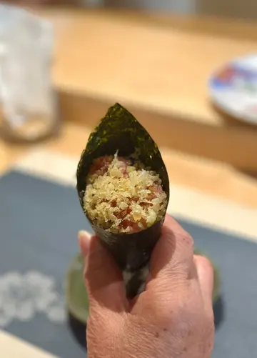 榊原電氣道54號亨環天后16樓天后地鐵站一出,直行大約一至2分鐘就到,太方便Dinner 蛮狩 hotarugari Omakase 20 品 壽司,刺身,和食,湯,甜品八款刺身,六件壽司1) 用豆腐做的幼麵,口感滑嫩,味道清淡帶有黃豆香,入口絲滑,上面鋪滿蔥花2)華𤂍生蠔長崎原產小長井牡蠣,日本嘅冠軍蠔,味道鮮甜,肉質肥厚滑嫩,帶有微微的鹹味,口感柔軟多汁,生蠔香味濃郁3)螢光魷魚釜山縣嘅螢光魷魚,上面放咗薑汁同埋豉油,入面仲非常多膏,味道鮮甜,魷魚香脆,爽口彈牙,表面經過火燒,入口多了一種煙熏味4)深海池魚日本蘭黃蛋黃醬,作為醬汁夠晒特別,日本山藥磨蓉,變成一個醬真係第一次試,池魚沾了山藥蓉和蛋黃醬,入口非常順滑,池魚肥美油脂甘香,很新鮮5) 白見貝壽司即係日本嘅象拔蚌白見背喺優質嘅水中上成長,肉質口感都非常上乘,鮮甜,又爽口,刺身非常厚身,有口感,味道濃厚爽甜6) 黑陸魚壽司魚味濃香,魚肉鮮嫩,富有油脂感,口感滑順,魚肉帶有微微的甜味7) 赤貝壽司赤貝加咗酸柑桔汁,味道鮮美,肉質柔韌,每一口帶著淡淡的甜味,口感滑順而富有彈性8)花雕酒浸鬚長蝦Size非常大隻,經過花雕酒浸一天之後,蝦既肉質依然爽口鮮甜,帶有花雕清香,蝦頭還有很多蝦膏9)毛蟹,用全隻北海道嘅毛蟹自己蒸熟,然後再起肉,廚師相當細心,又夠精美,蟹肉爽口鮮甜,旁邊配有醋汁,10)熟食炸生菜之王,味道淡淡的夠清新,腐皮包住松葉蟹一齊炸,入面依然Juice脆口,經過高溫炸之後,蟹肉依然鮮甜11)慢煮南非鮑魚鮑魚慢煮4小時,肉質柔嫩,旁邊用鮑魚肝做嘅醬甘香12) 赤陸魚壽司油脂比較多,肉質細膩,口感滑嫩,帶有一絲甜味13)腦天吞拿魚壽司經過火焰之後,油脂出晒嚟,吞拿魚腦天係眉心嗰個位置,肉質嫩滑細膩,入口即化14) 磯雪昆布包住甜蝦刺身,上面鋪滿大大粒嘅三文魚子,另一款鋪滿俄羅斯海膽,海膽甘香鮮甜,啖啖都係甜蝦肉15)米紙A5和牛配俄羅斯海膽旁邊有淡雪塩,A5和牛入口即化,牛味濃郁,油脂豐富,海膽味濃甘香,配上淡雪鹽花,米紙炸過變得非常脆16)拖羅(近魚鮫位)壽司,肉質豐滿,油脂豐富,口感順滑,入口即化,很新鮮17)麵豉湯烏冬,烏冬入口順滑,口感煙煙韌韌,帶有麵豉鹹香味18)蒜蓉牛油燒蝦,非常香的蒜蓉牛油味,蝦肉彈牙爽脆,蝦肉鮮甜19)甜品水信玄餅,上面有黑糖汁,加上黃豆粉,玄餅入口冰冰涼涼,很像啫喱口感,很特別20)蘭王蛋加湖北蛋再用焗爐焗45分鐘製成嘅玉子,很濃的蛋黃香味,甜甜的很出色…查看更多
