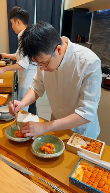 北海道縞蝦 & 栗蟹 & 長崎華漣 & 醬油漬赤身& 姿型炸香魚 & 北海道喜知次 & 鹿兒島A5和牛