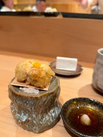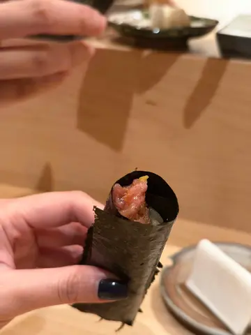 真心分享一家值得回访的香港Omakase——榛Hashibami。没有夸张的吹捧,只有实实在在的味觉记忆。🍳 鲍鱼松茸茶碗蒸 嫩滑蒸蛋里藏着弹牙鲍鱼,松茸香气温柔,最爱那勺脆米,悄悄增加了口感层次,一口就惊艳。🐟 紫苏左口鱼刺身 清爽的左口鱼裹着紫苏叶,蘸上师傅特调的海胆酱——酸中带浓,恰好打开味蕾。🦀 自家制芦笋豆腐脑配松叶蟹 豆腐脑细腻豆香十足,北海道松叶蟹肉甜嫩,搭配芦笋的清新,整体淡雅却印象深刻。🔥 静冈县炭火烧鳗鱼 备长炭火烤出鳗鱼焦香外皮,肉质依然饱满。山椒粉+wasabi酱汁很妙,解腻又提鲜。🍣 寿司环节 • 北海道池鱼:鲜甜柔软,醋饭酸度平衡得刚好 • 富山湾白虾:糯甜口感像在吃云朵 • 吞拿鱼中腹&大腹:中腹柔润,大腹脂香浓郁却不腻 • 生筋子:师傅现场处理一整条,咸鲜爆珠感太满足✨ 压轴招牌:北海道两种海胆天妇罗 紫苏叶裹着海胆轻炸,海胆浓醇creamy,松露香气画龙点睛,温度控制得完美,丝毫不油。🍵 细节见真心 每道菜后师傅会换茶,热茶温度始终刚好,绿茶、焙茶轮换,清口又不抢味道。