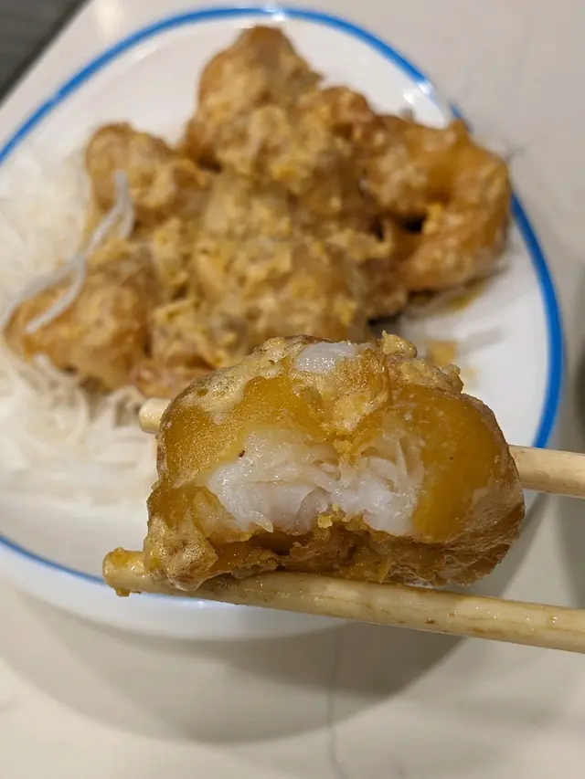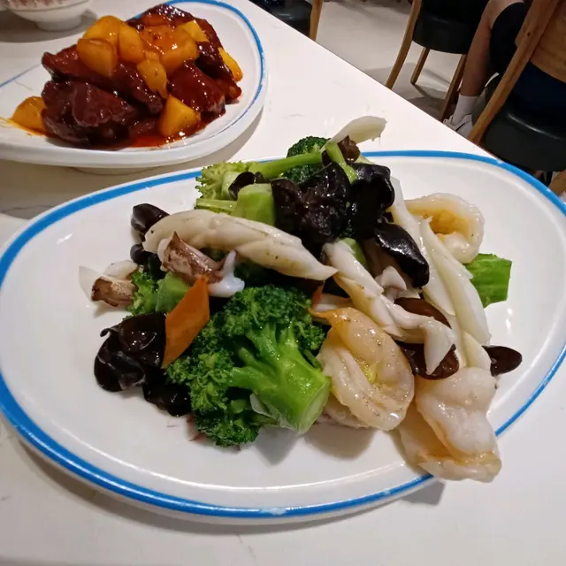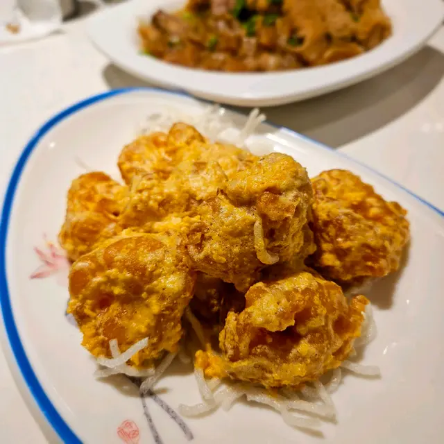 集經濟美味於一身 dordor02等級42024-10-25911 瀏覽 關注 在上水火車站附近下班,見到人氣旺盛的榮光粉麵茶餐廳,價錢經濟實惠,幾位同事抱著一試無妨的心態去吃晚飯,原來有意外驚喜!這裏食物種類超多,除了茶餐廳的粉麵飯小菜也有日式便當,我們決定點小菜一起吃。金沙蝦球$118,外層炸得鬆脆,有鹹蛋黃沾滿外層,蝦球大隻,咬著啖啖肉,滿口都是蛋黃香。野菌乾燒伊麵$58,炒得有鑊氣,夾起每一口都熱氣騰騰,醬汁量適中,味道不會太鹹,伊麵煙韌口感配雜菌爽口,非常好吃!水煮牛肉$98,相對前面兩道菜就失色了,湯底較淡,辣度是小辣,但吃慣川菜洶湧而出的麻辣香,這裏的湯底就總覺得薄弱一些。牛肉份量多,還有薯粉墊底。避風塘茄子$68,未吃過避風塘炒法的茄子,原來是先脆炸茄子,灑上炸蒜蓉、椒鹽等,味道不會太鹹,口感香脆,茄子裏面又多汁。豉椒炒蜆$88,職員介紹,海鮮不是經常有,要試試。果然,炒出來有茶樓水準啊!蜆肉隻隻開口,新鮮嫩滑,豉椒醬汁夠香濃,非常惹味!花膠雞煲翅一位$68,每位點一盅燉湯,這個燉湯新鮮即製,要預早落單才不致等太久。燉出來的湯滋補養顏,有雞湯香甜,雞腳的膠原蛋白都煮到湯裏了,還有一大片花膠,真材實料,怪不得這麼多人來喝湯,值得一試。我們吃得很滿意,除了水煮牛肉味道淡之外,其他炒的、炸的、燉的,都做得非常好,而且價錢經濟,以後可與同事常來。…查看更多+ 8以上食評乃用戶個人意見 , 並不代表OpenRice之觀點。1分享集經濟美味於一身 榮光粉麵小廚 https://s.openrice.com/QrbT0KAHN00檢舉 張貼 評分5味道4環境5服務4衛生5抵食用餐日期2024-10-19用餐途徑堂食人均消費$200 (晚餐)